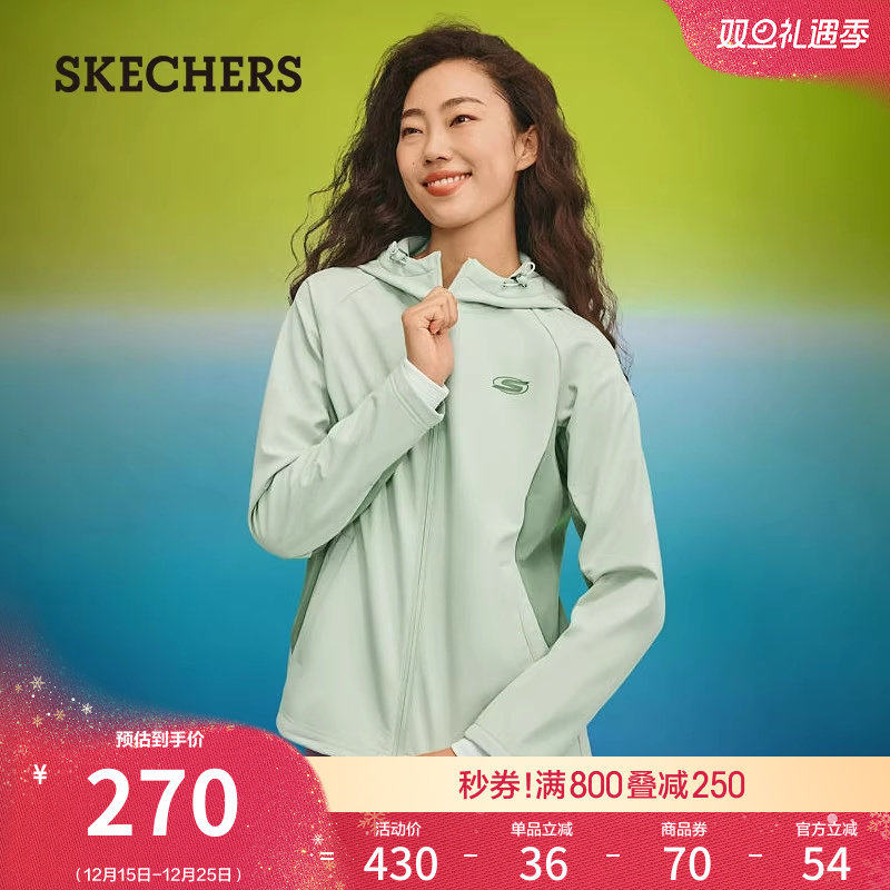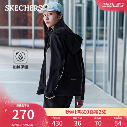 斯凯奇秋冬女外套夹克运动风衣加绒保暖连帽设计轻质柔软休闲上衣