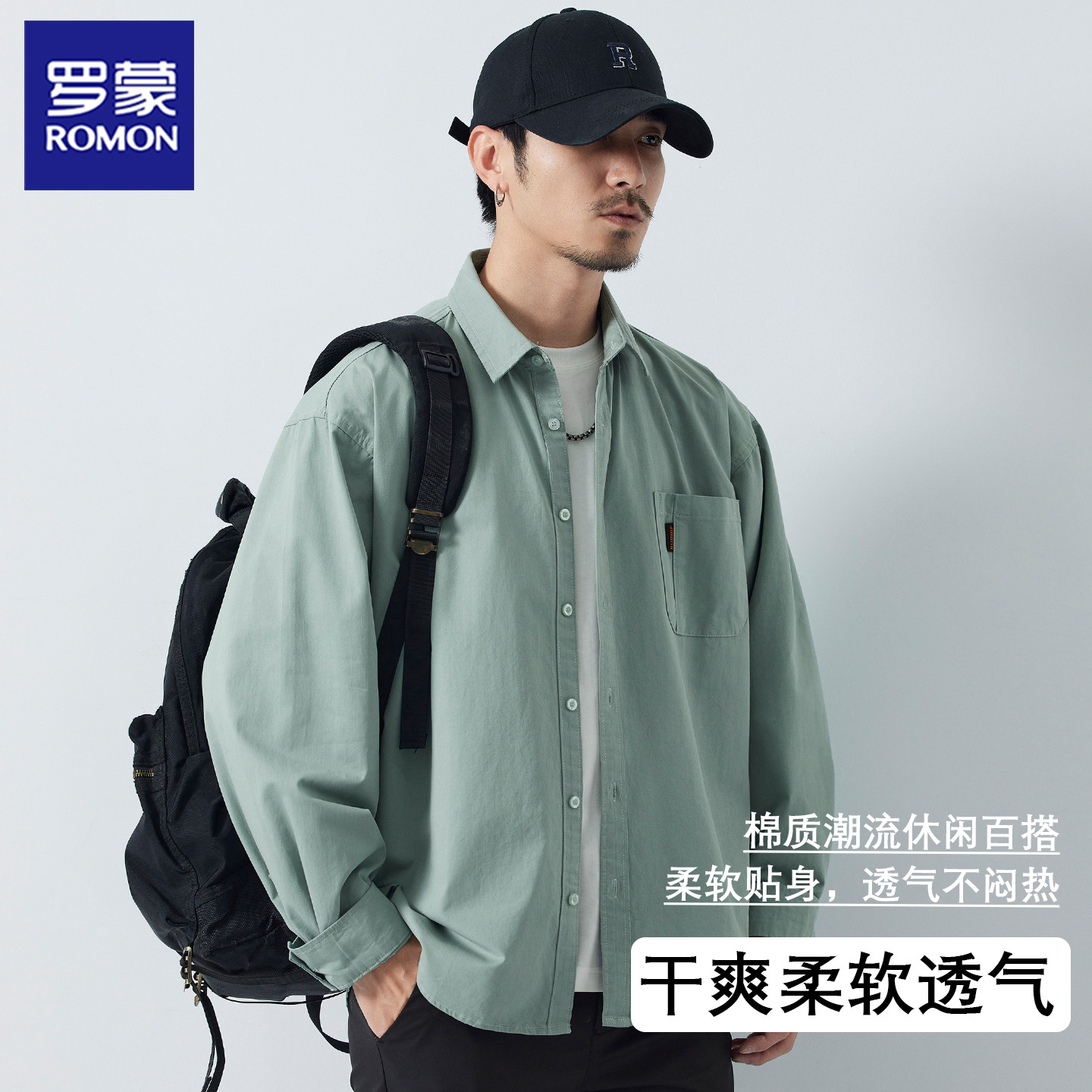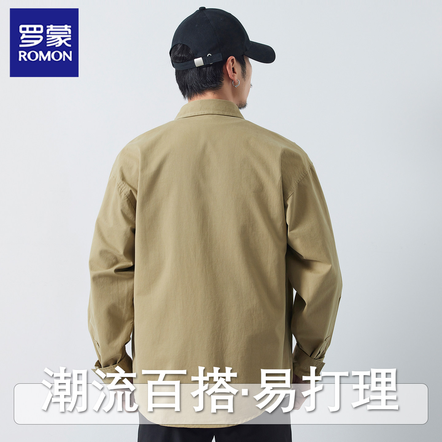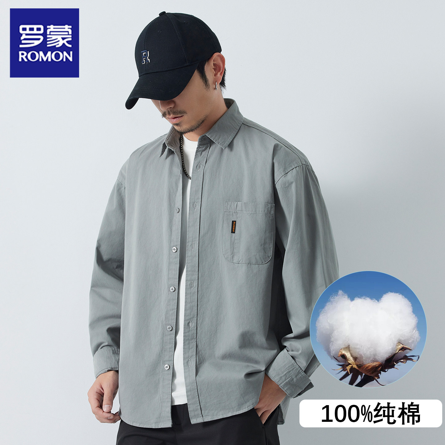 罗蒙秋季长袖衬衫上衣外套纯棉