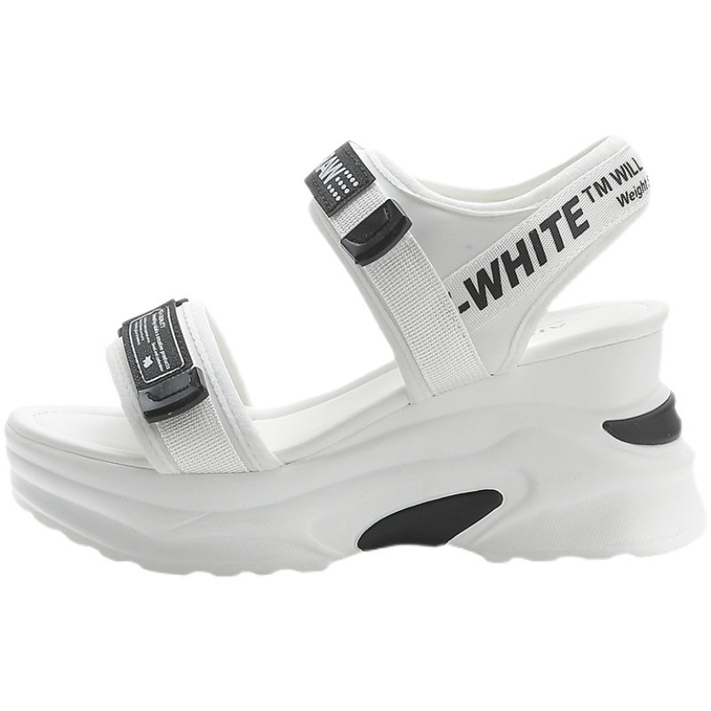 坡跟8CM厚底女士凉鞋魔术贴鱼嘴小个子休闲女鞋2025夏季新款