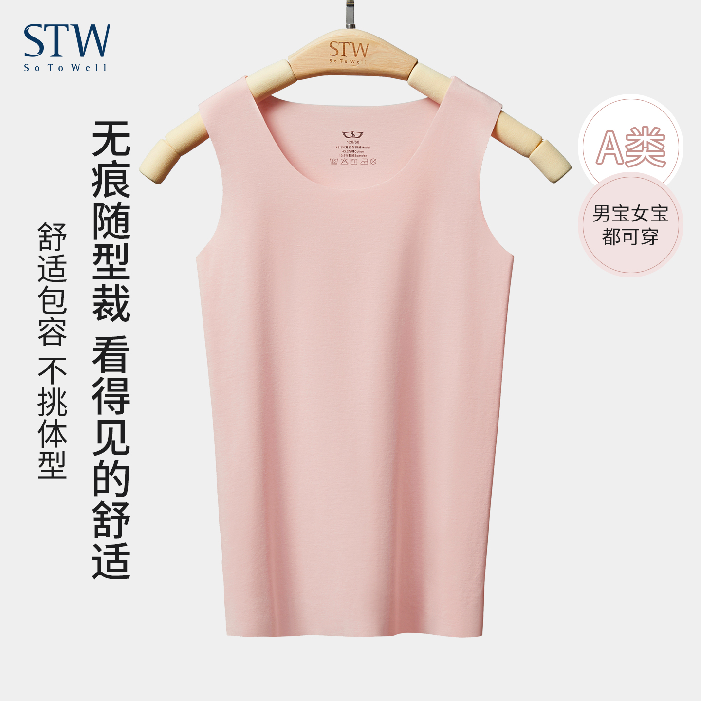 STW儿童莫代尔棉无痕吊带背心男童女童中大童宝宝夏季薄外穿打底