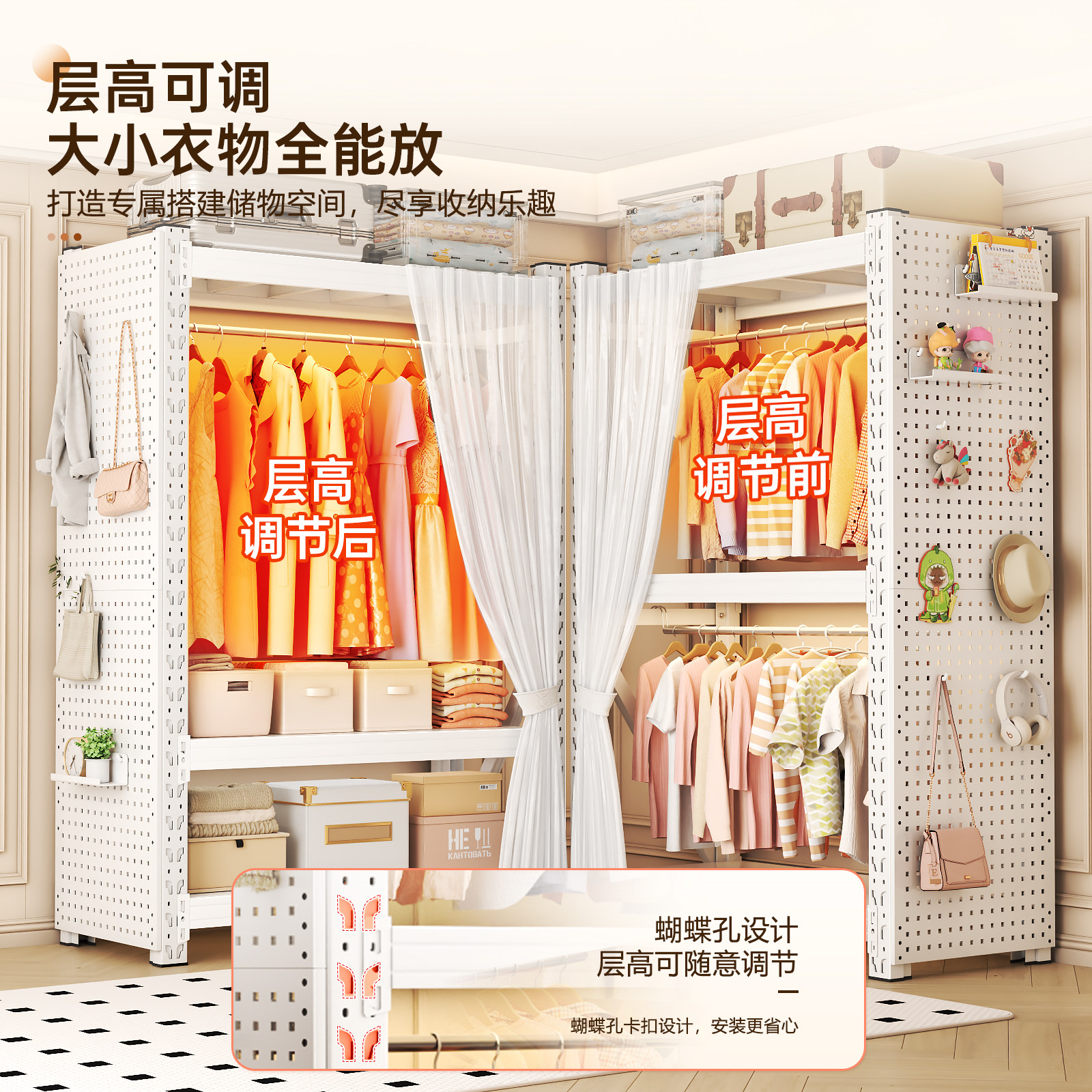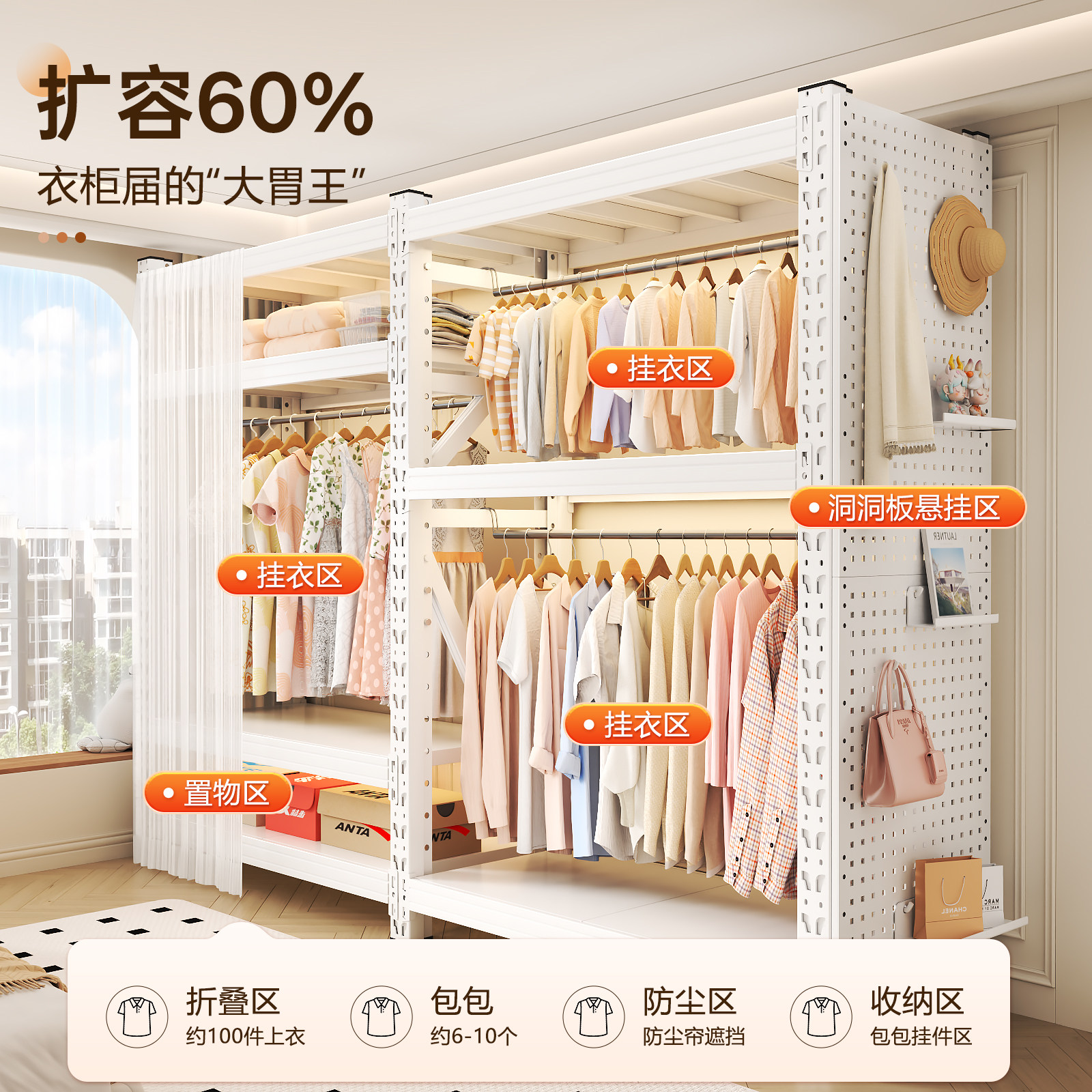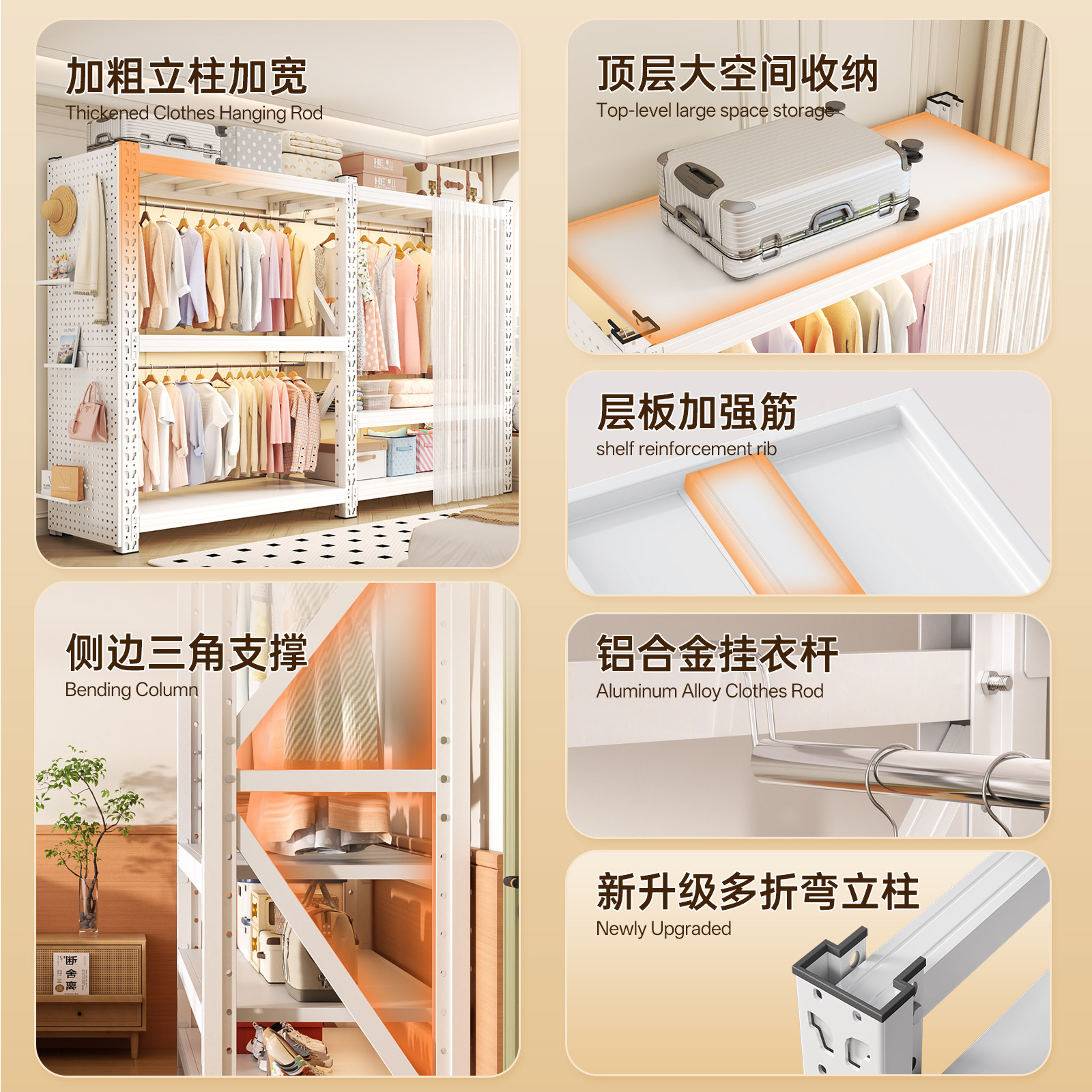 卧室金属衣柜开放式衣架简易组装货架衣橱出租房落地置物架收纳柜