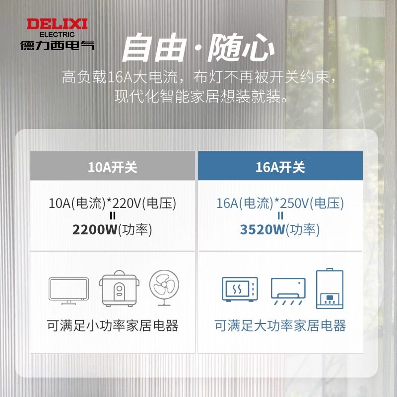 德力西电气单双开五孔开关插座