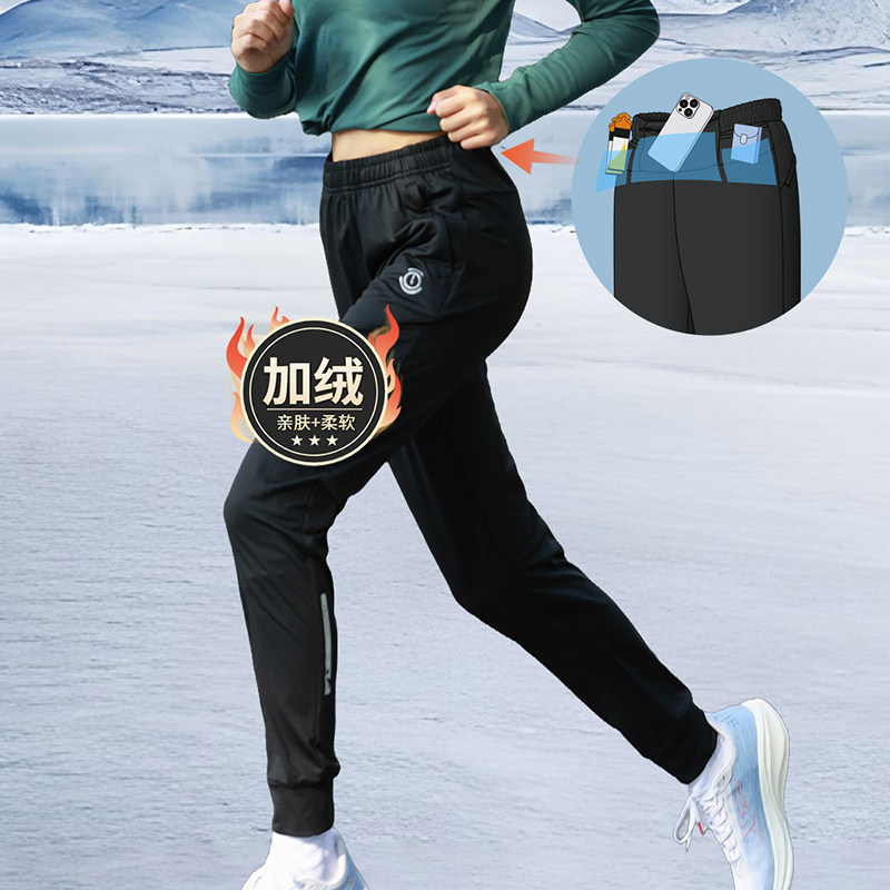 画跑加绒跑步训练长裤户外马拉松男秋冬宽松运动带腰包女速干透气