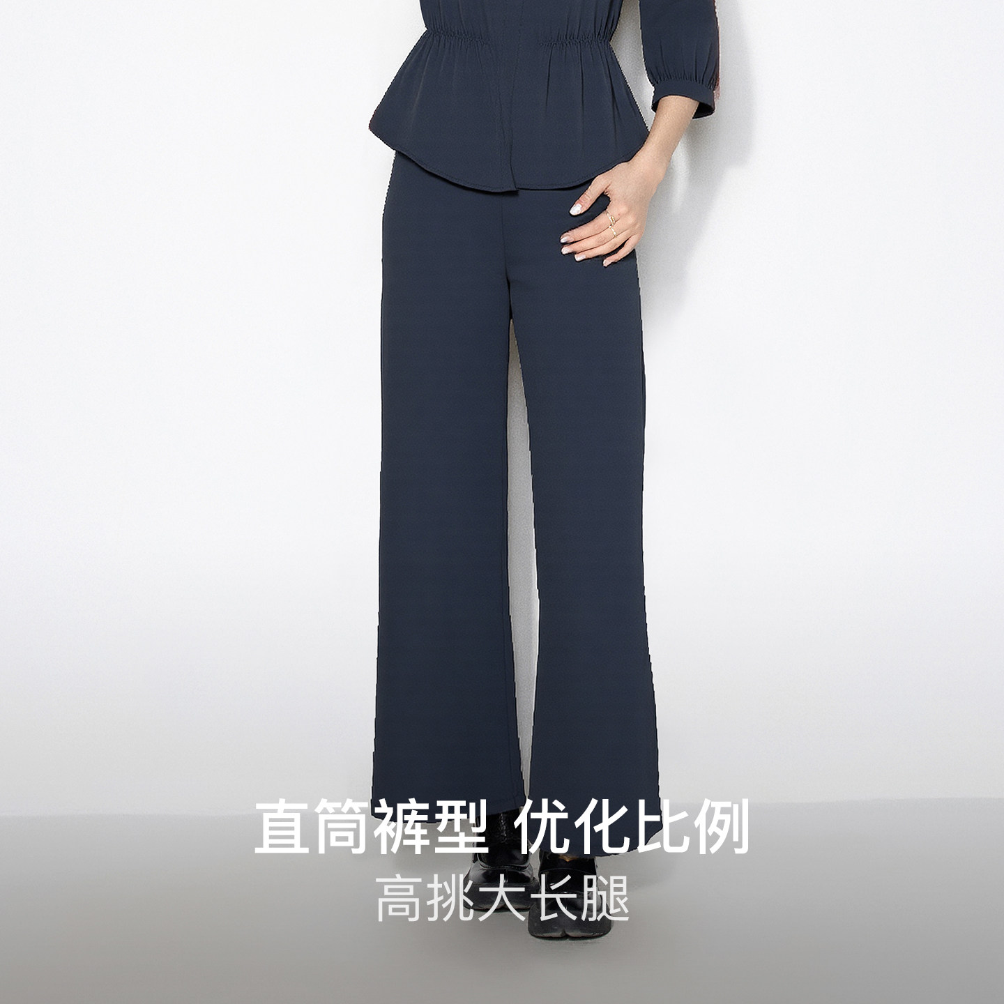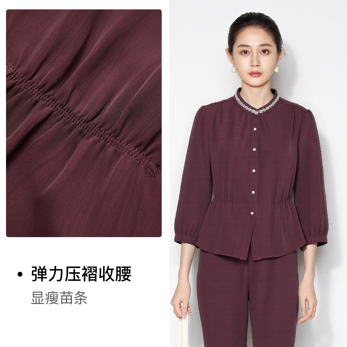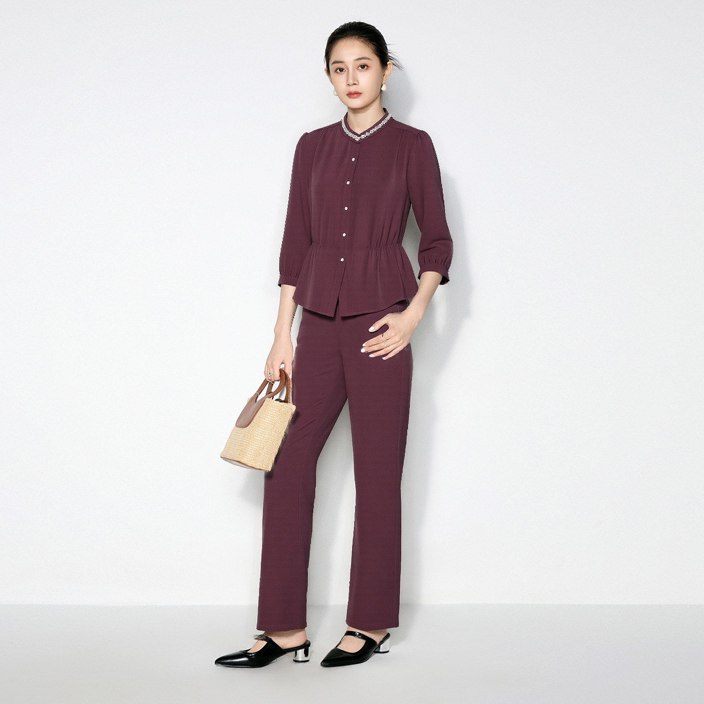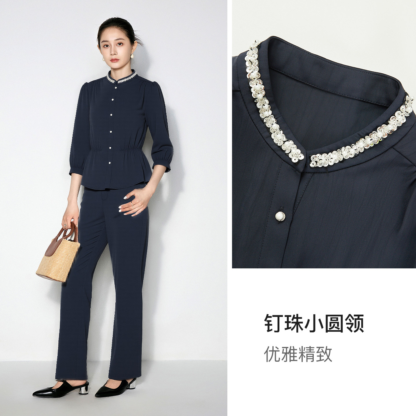 马天奴2025秋冬新款钉珠圆领单排扣衬衫上衣直筒裤子长裤两件套装