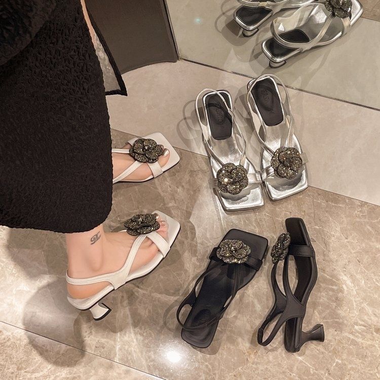 山茶花温柔仙女风气质优雅凉鞋2024新款浪漫约会百搭配裙子高跟鞋