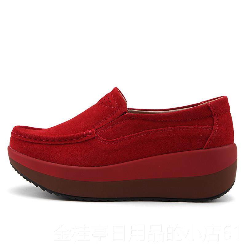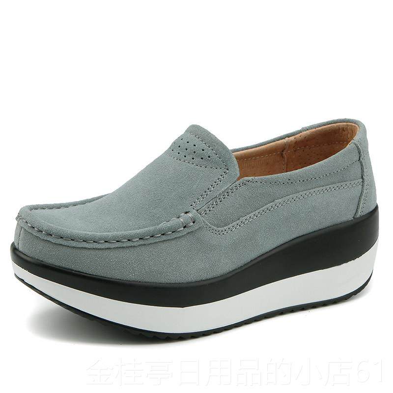 高档2蹬024皮秋季新款一脚摇妈摇鞋妈鞋软底女舒适单鞋鞋坡跟中年