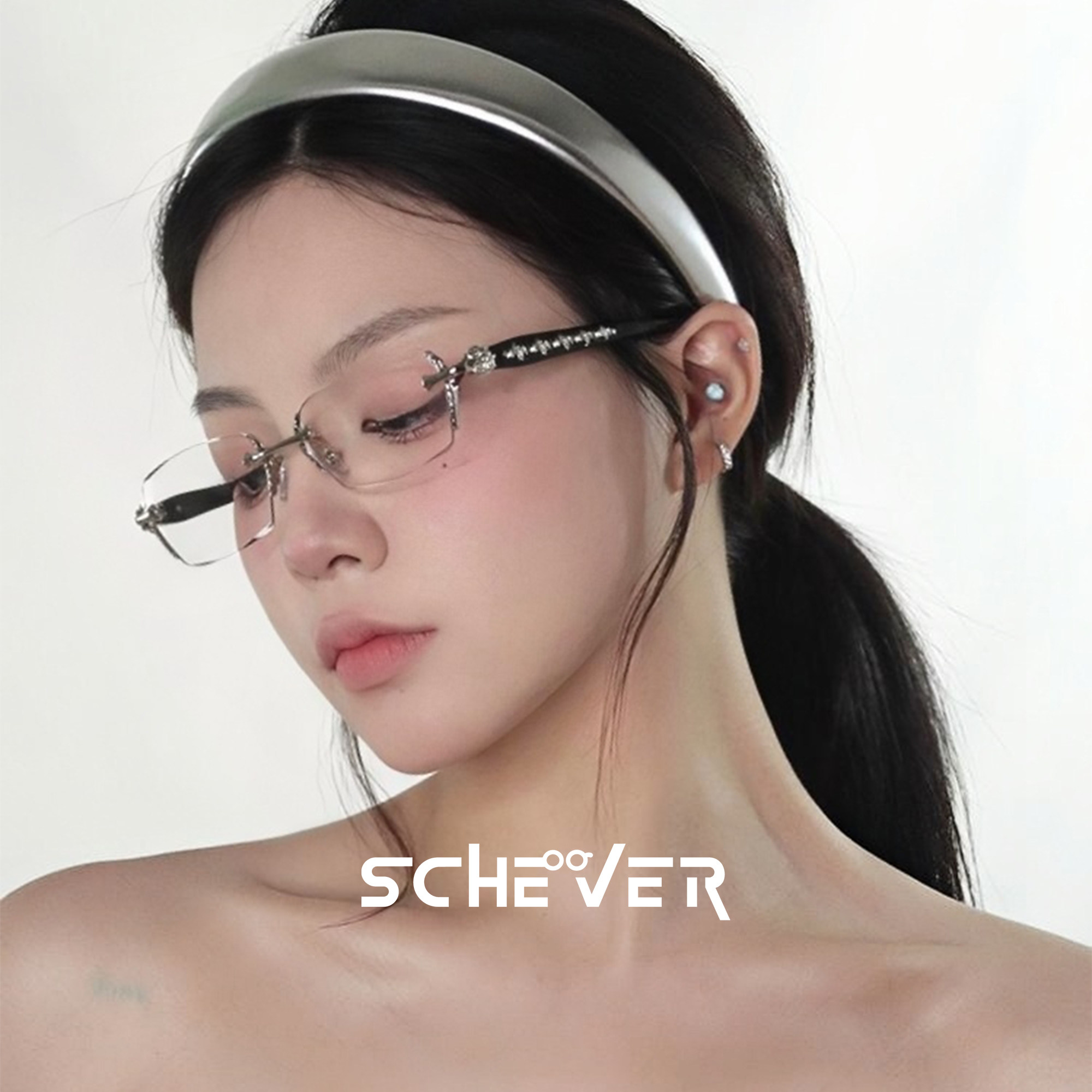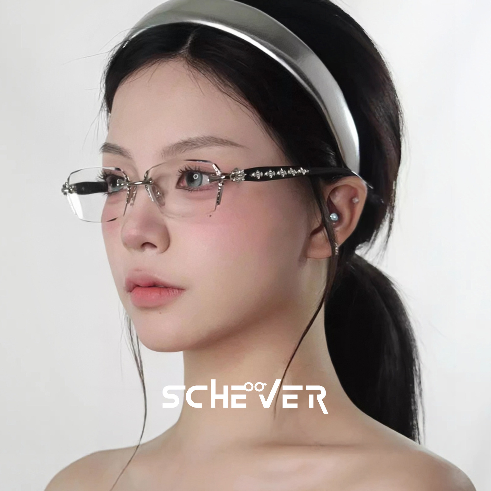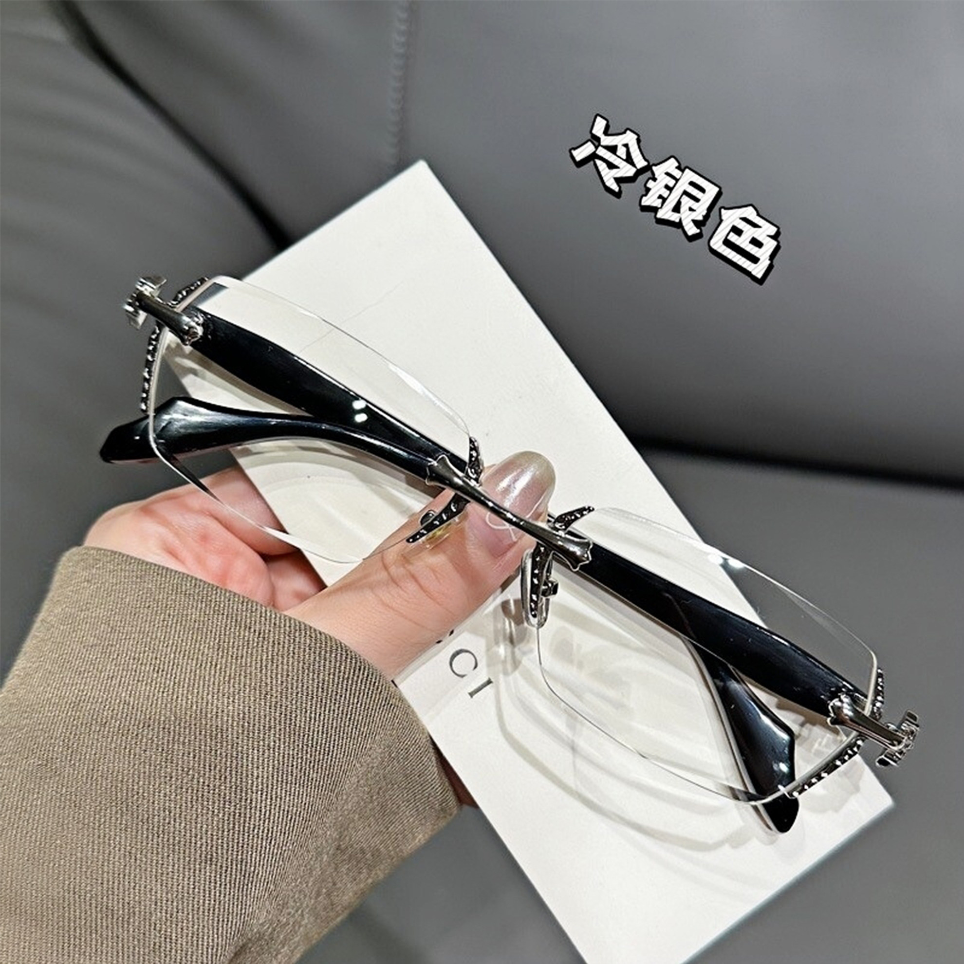无框高智感纯欲眼镜女近视可配度数y2k欧美风钻石切边镜框眼睛架