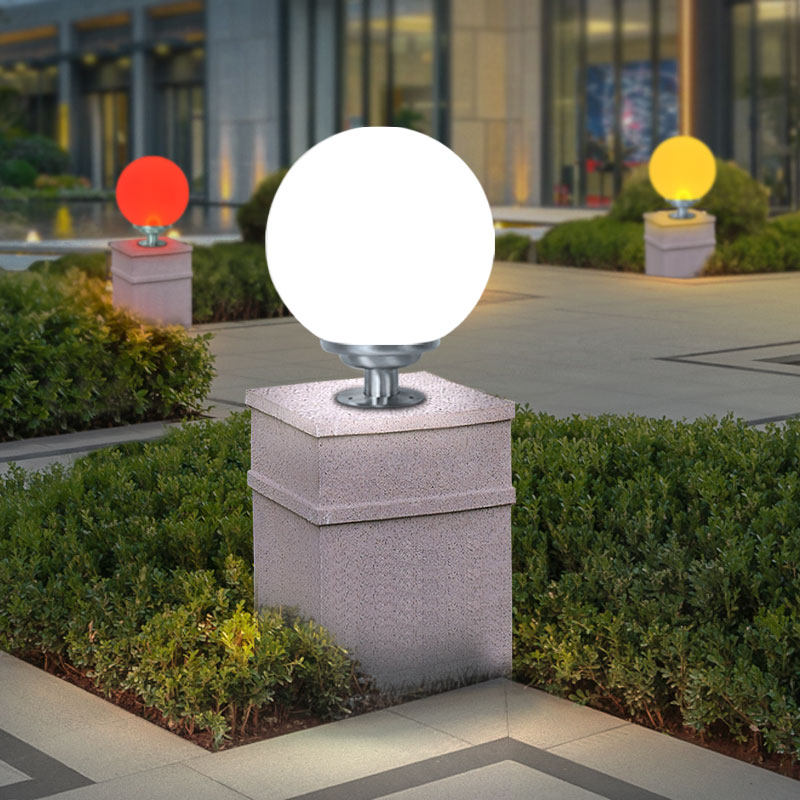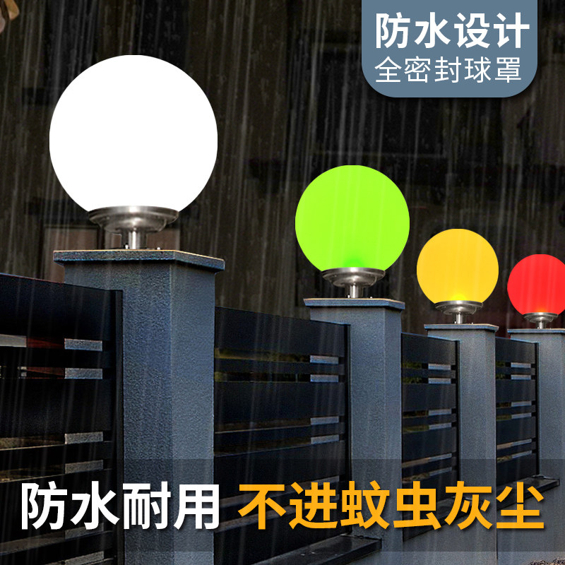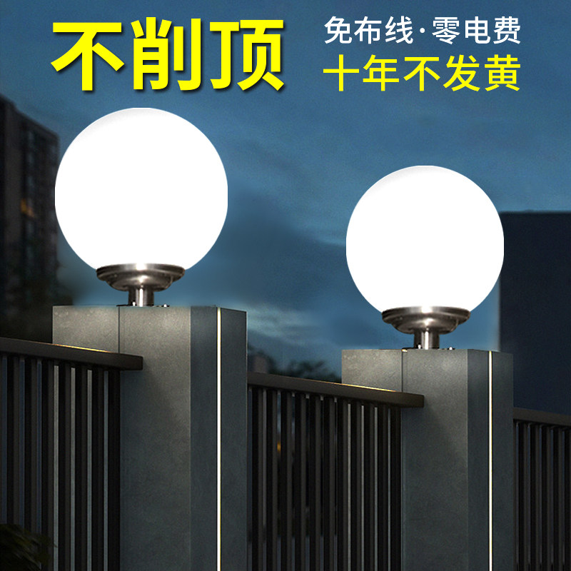 太阳能柱头灯别墅围墙柱子户外防水庭院灯外墙圆球形灯现代大门灯