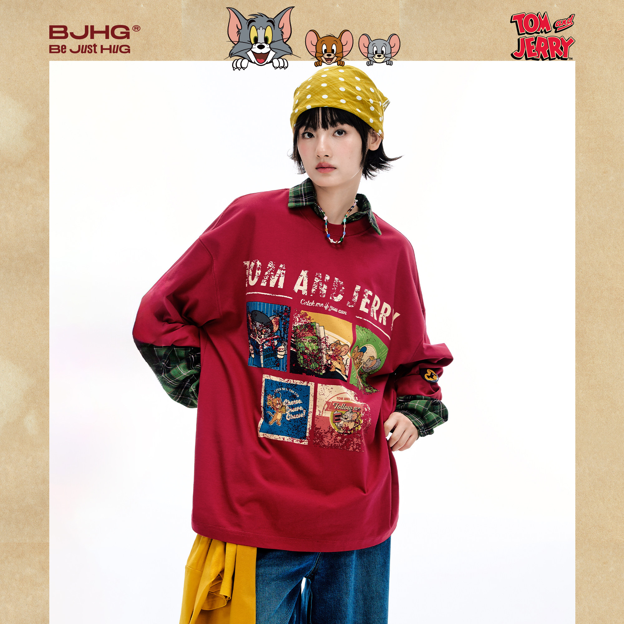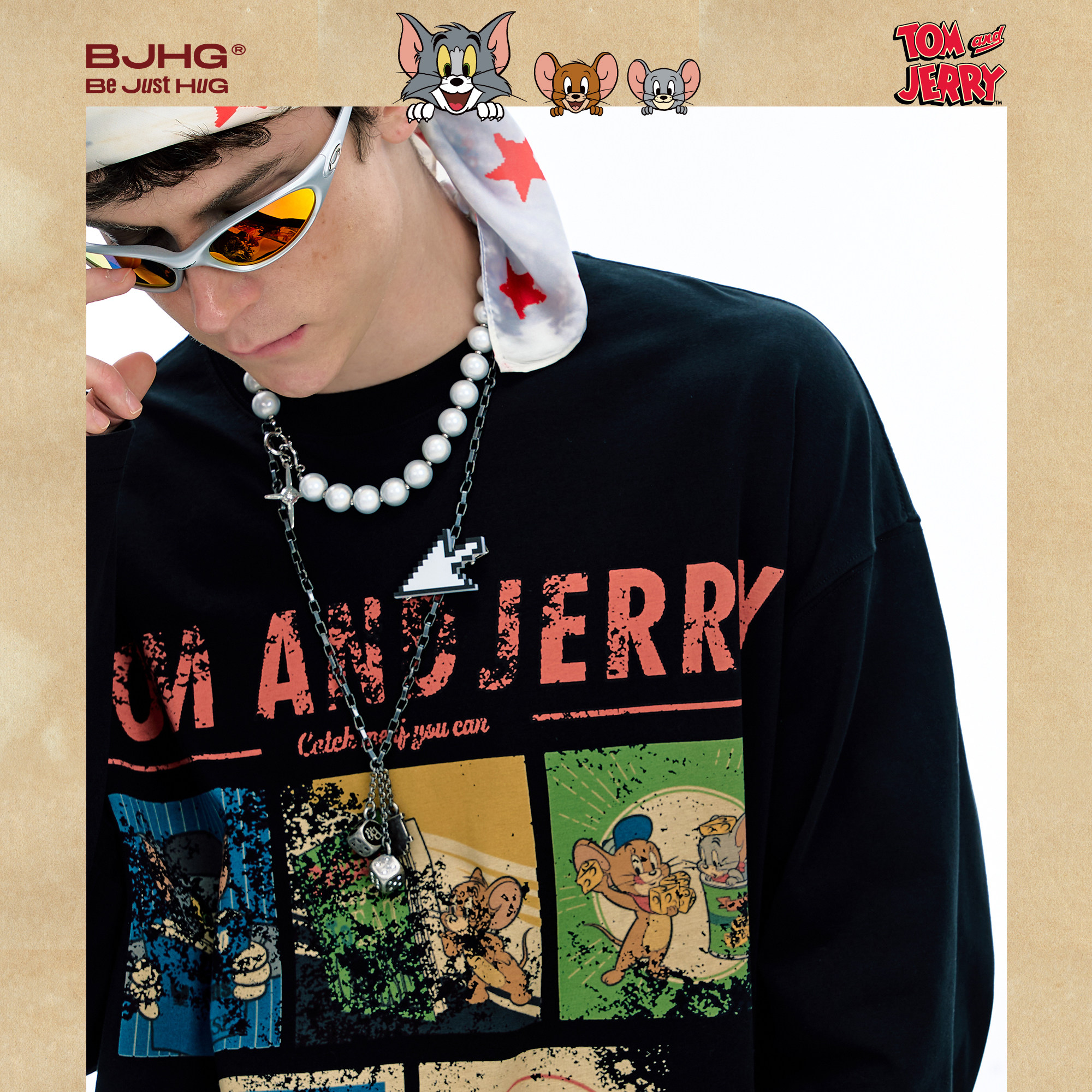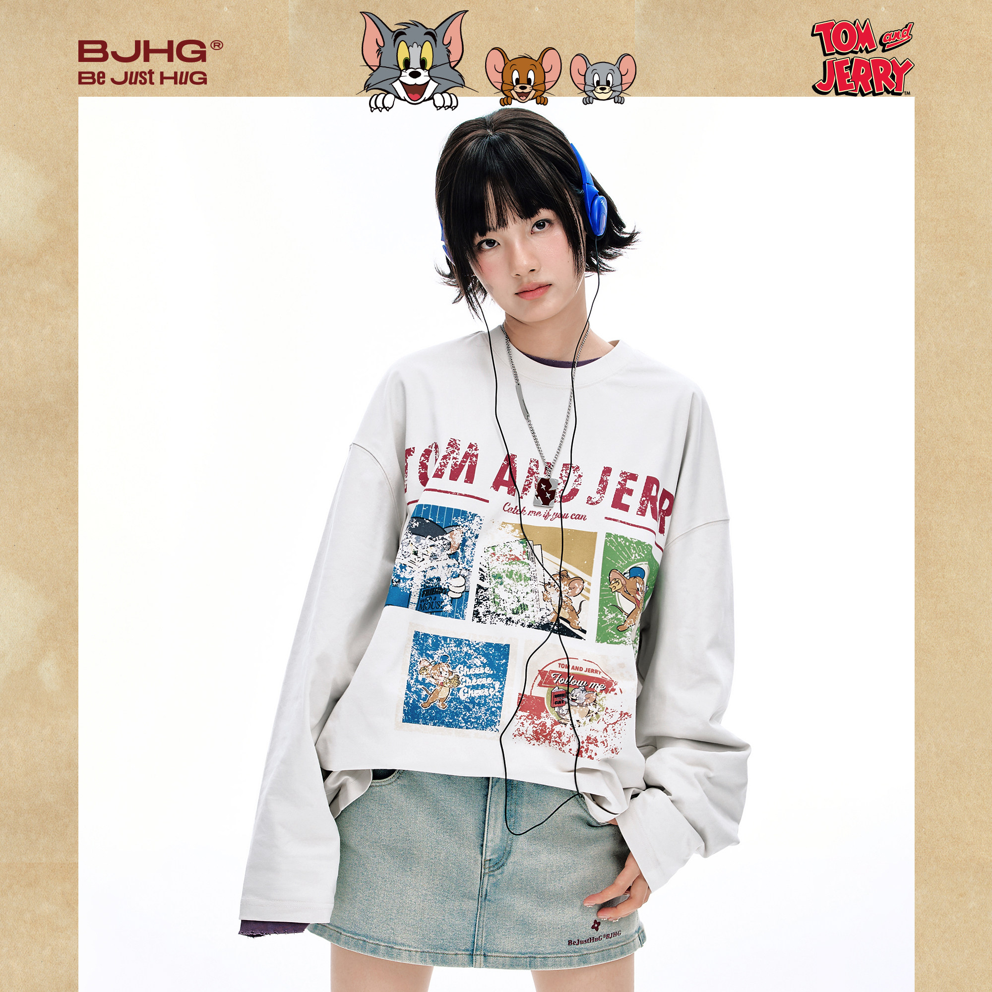 猫和老鼠联名BJHG不计后果长袖t恤男士春 多功能百搭纯棉打底衫女