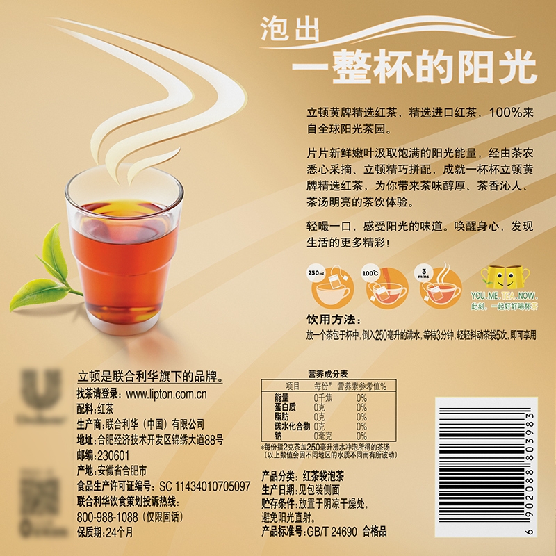 立顿红茶绿茶茉莉花酒店宾馆自助餐KTV单位采购一次性茶包袋泡茶