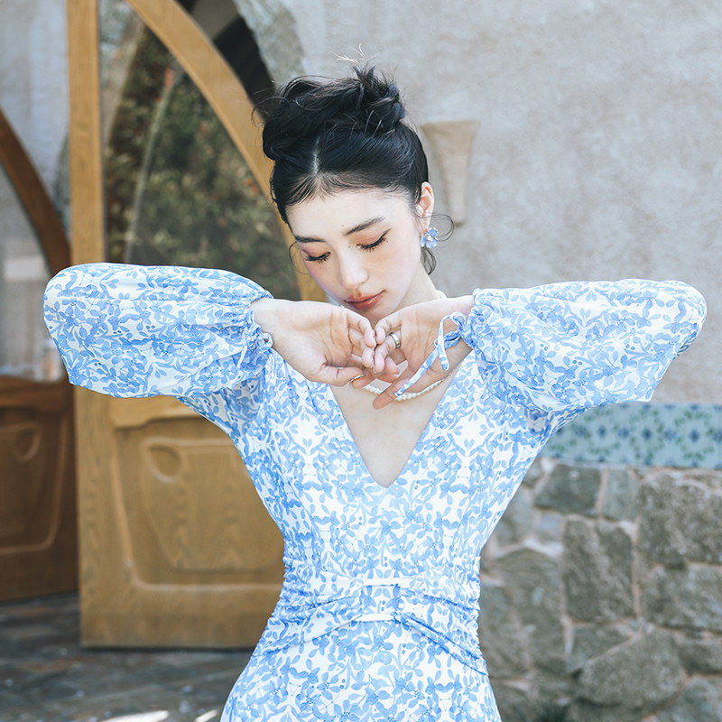 自由的风-W小调显瘦高级感连体游泳衣女长袖海边性感温泉度假泳装
