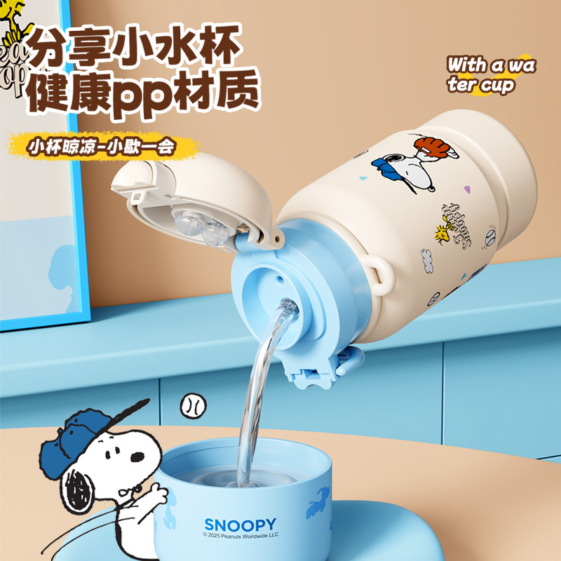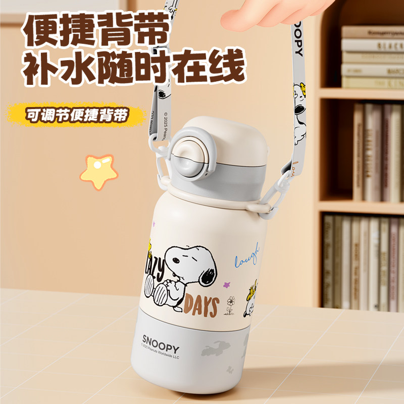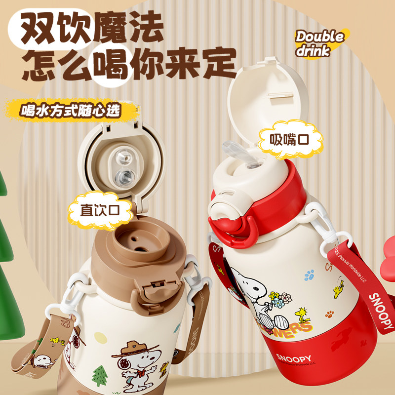 史努比儿童吸管保温杯男生女生幼儿园学生上学专用便携大容量水壶
