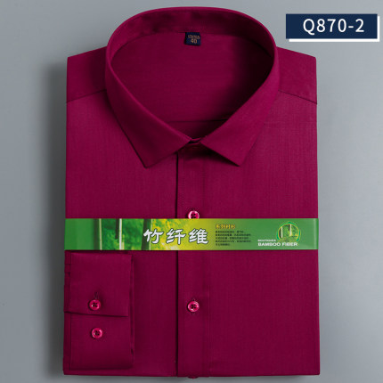 春季竹纤维衬衫男长袖商务休闲职业工装酒红色衬衣男打底寸衫免烫