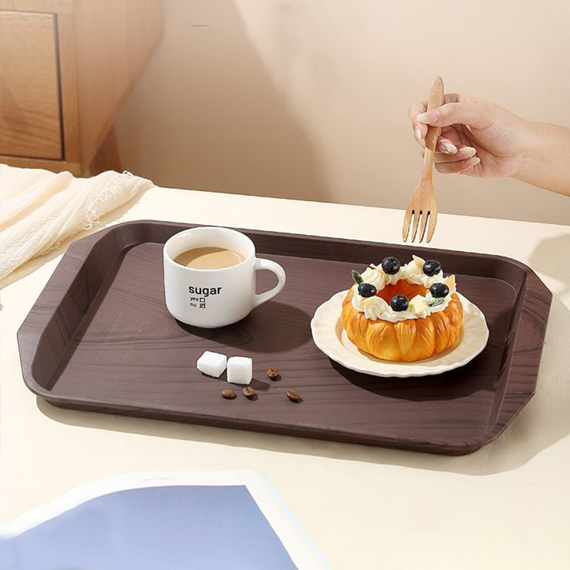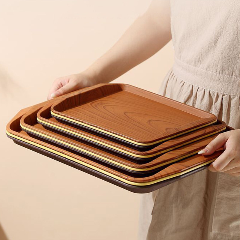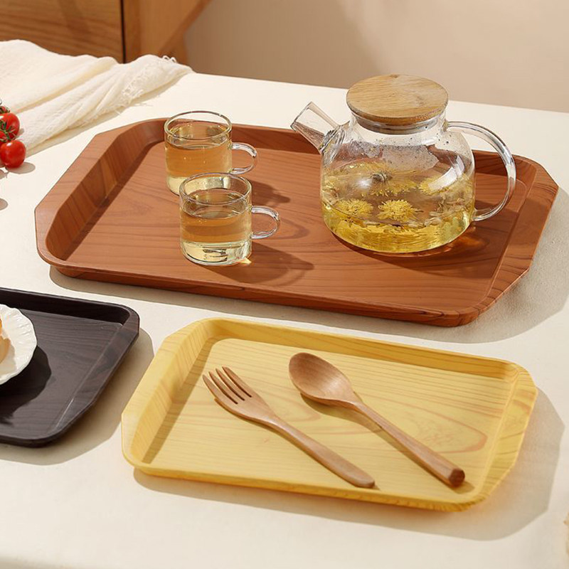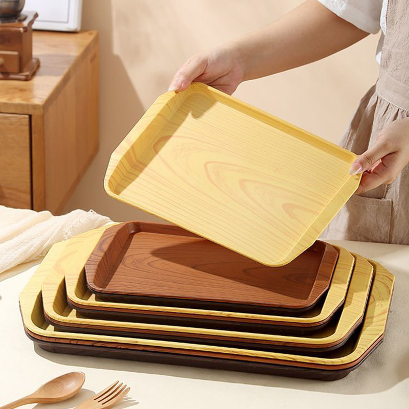 日式仿木纹托盘长方形平盘家用收纳盘塑料餐盘茶盘果盘蛋糕甜品盘