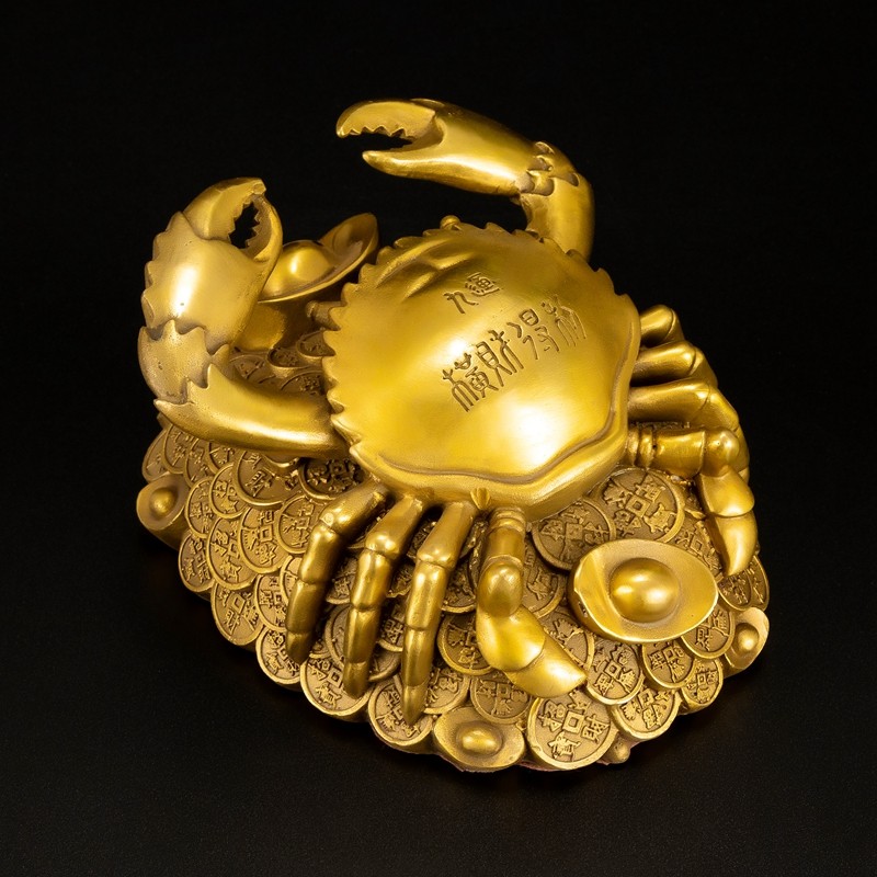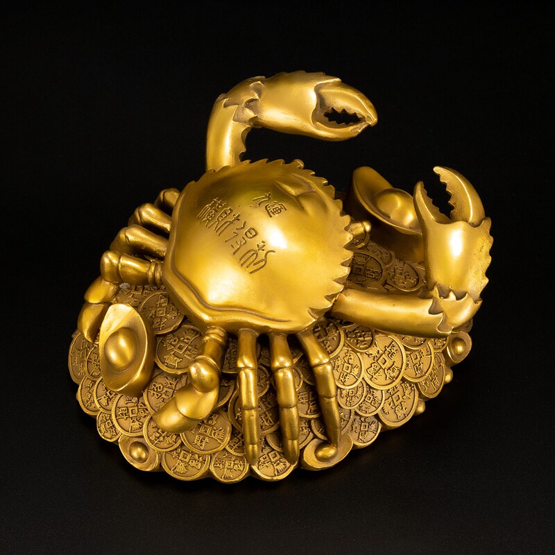 铜金钱螃蟹摆件横财得利将军八方来财蟹招财办公室家居装饰工艺品