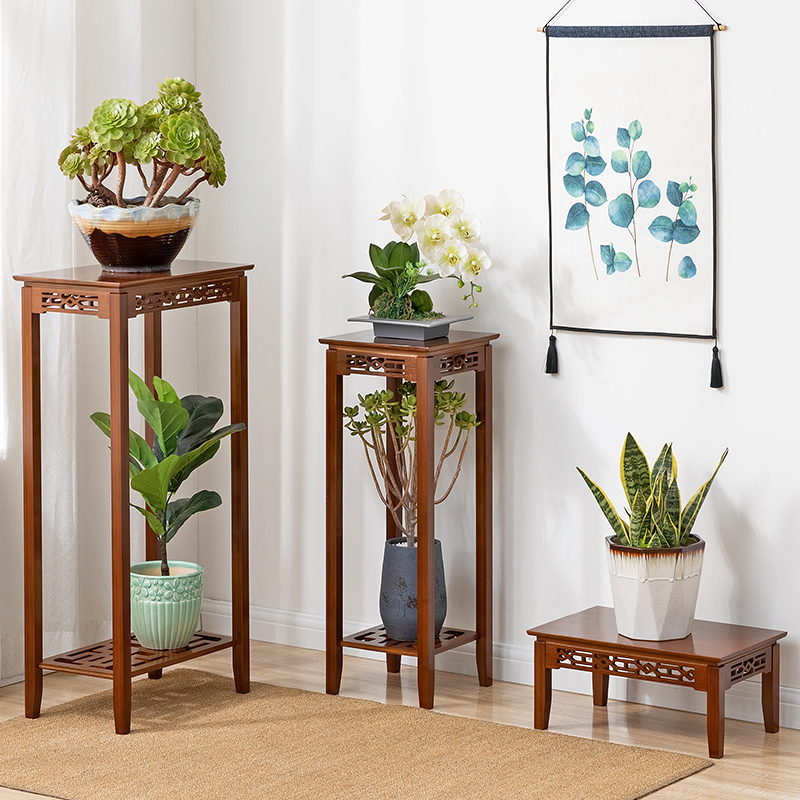花架子置物架阳台客厅落地式花盆托架多肉铁艺网红实木植物摆放架