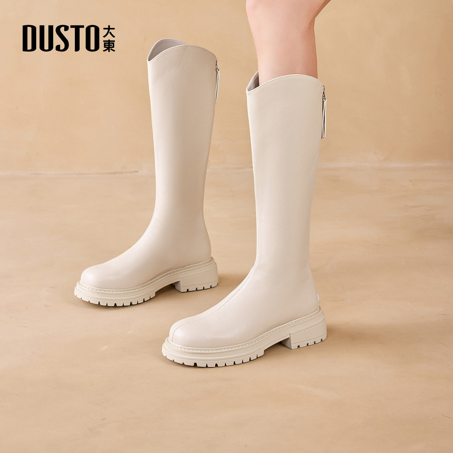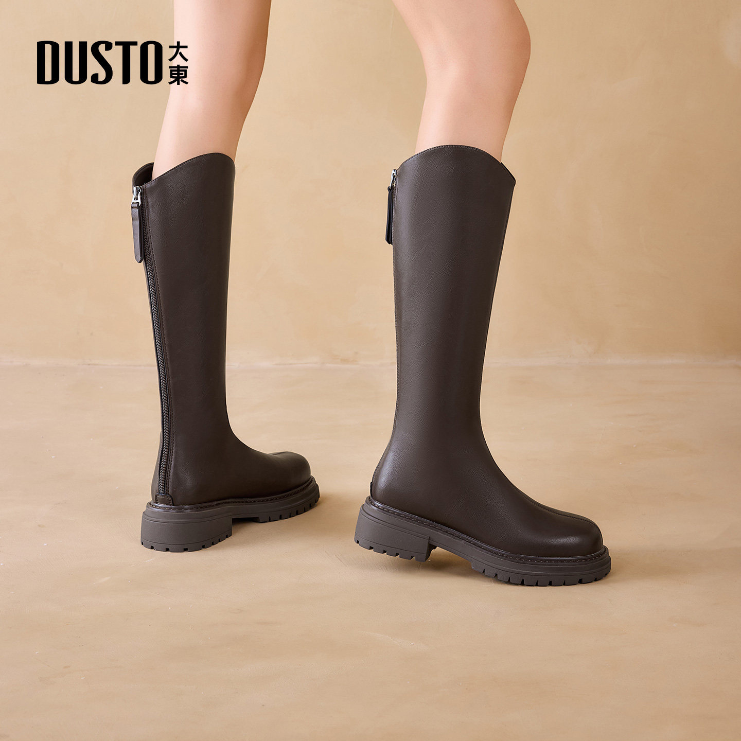 大东官方厚底增高长筒靴女2025新款冬季黑色粗腿长靴加绒高筒靴子