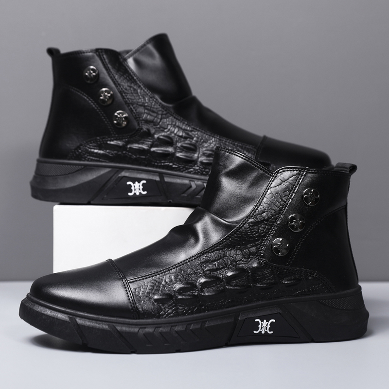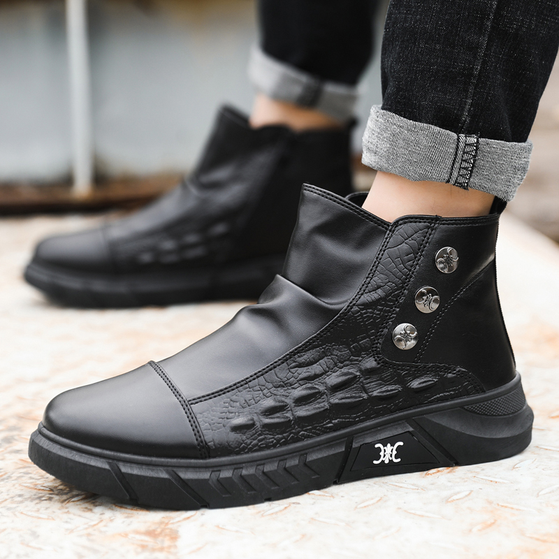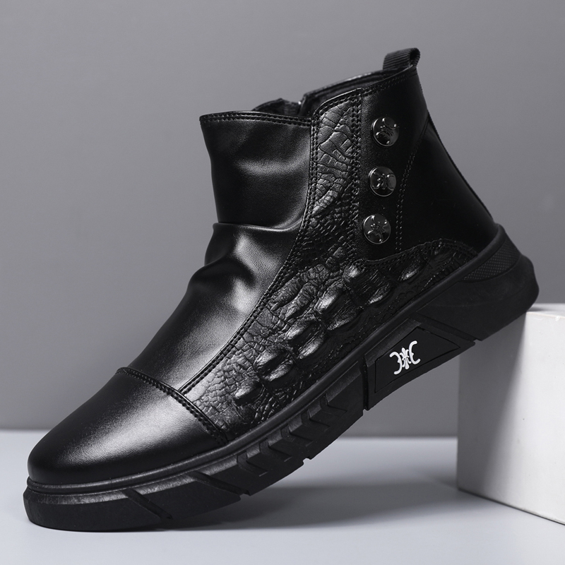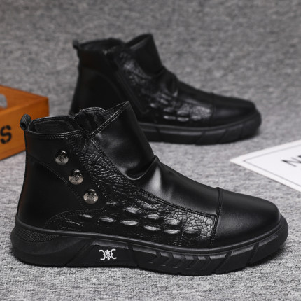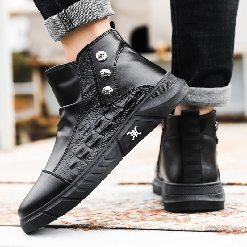 高帮男鞋冬季2025新款英伦风休闲皮鞋男士皮面防水黑色工装马丁靴