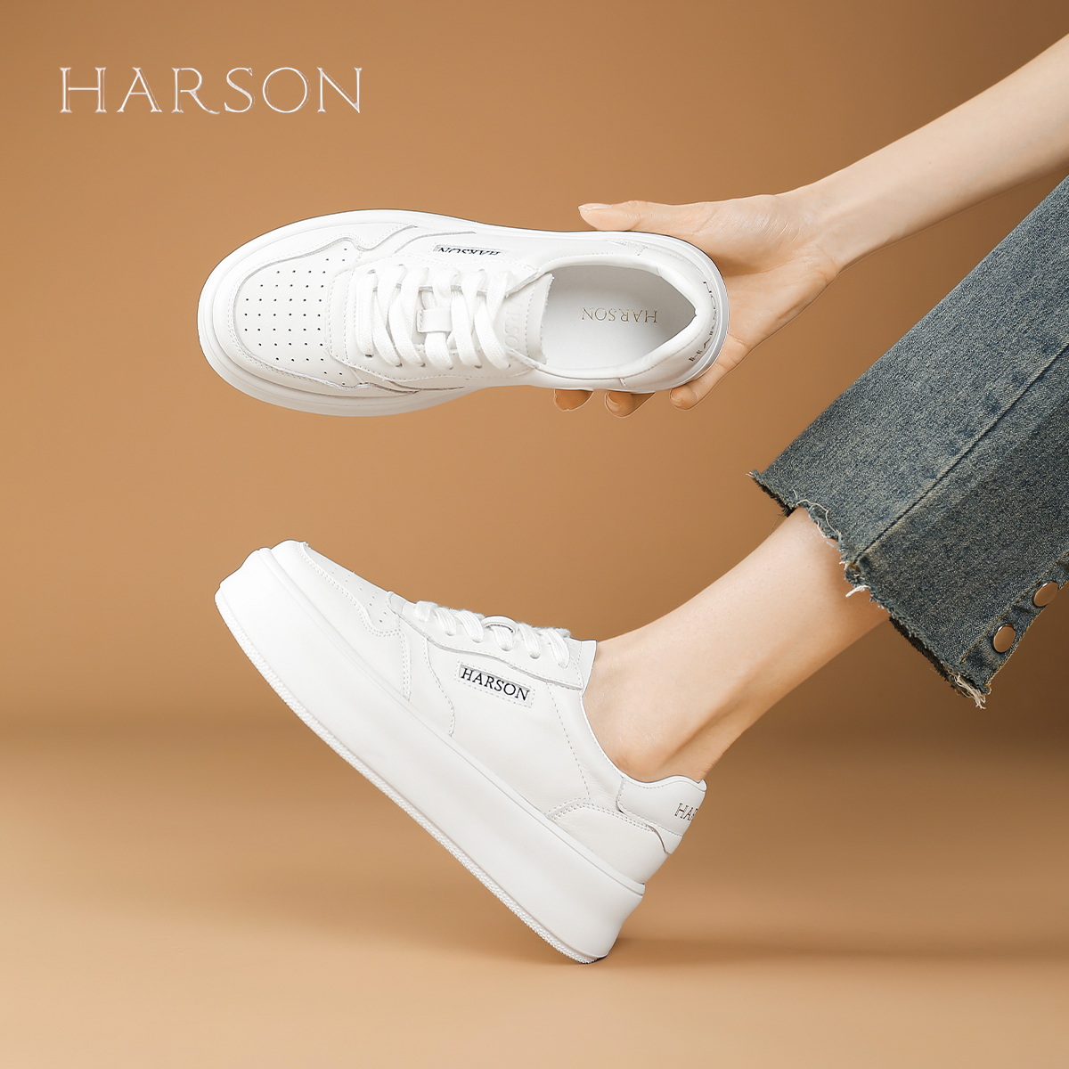哈森厚底小白鞋板鞋女鞋2025春秋季新款百搭时尚增高舒适休闲鞋