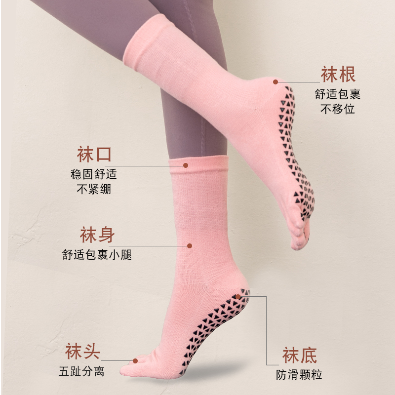 四季款瑜伽袜子防滑专业女五指袜中筒普拉提专用瑜珈健身运动室内