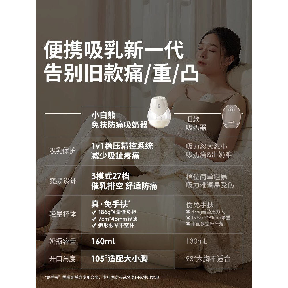 小白熊吸奶器免手扶电动单双边母乳全自动便携一体式旗舰原装配件
