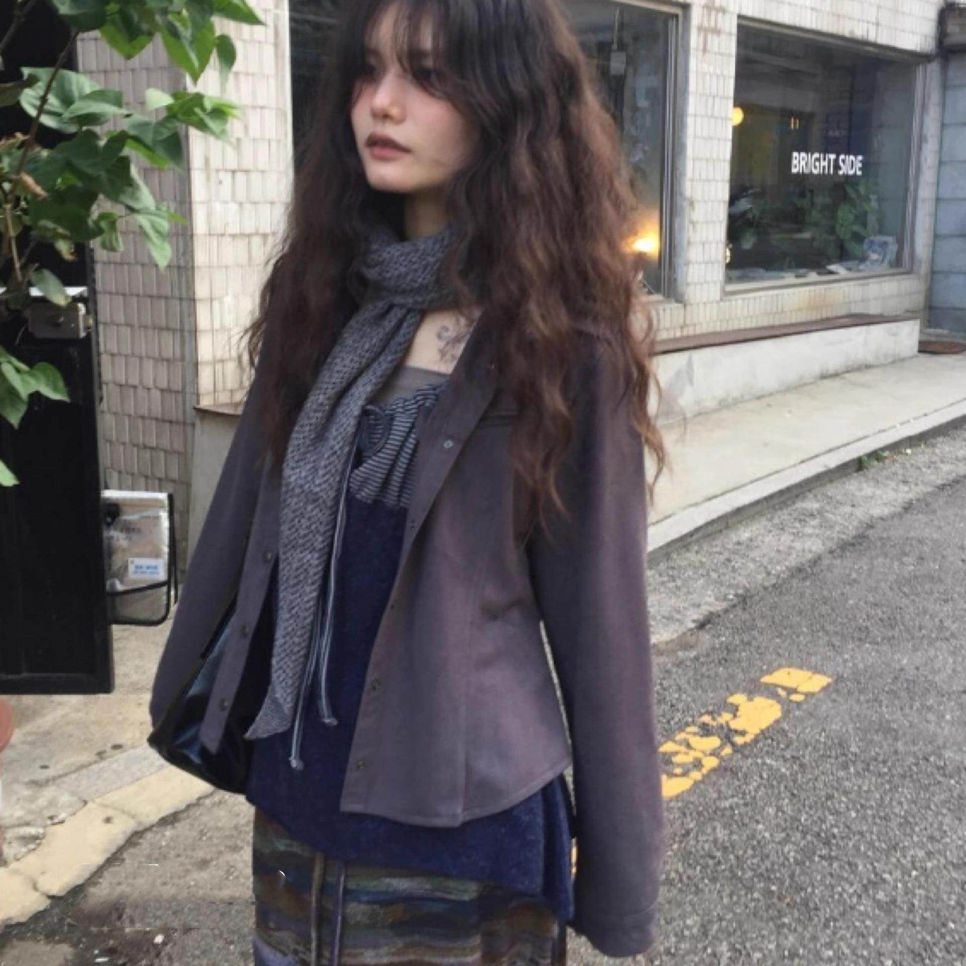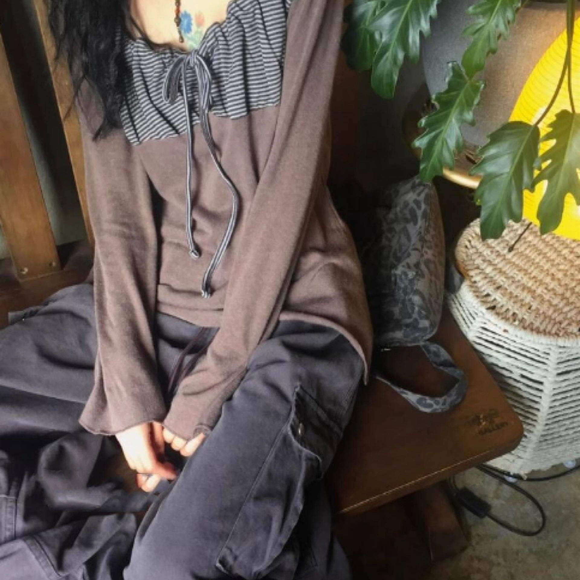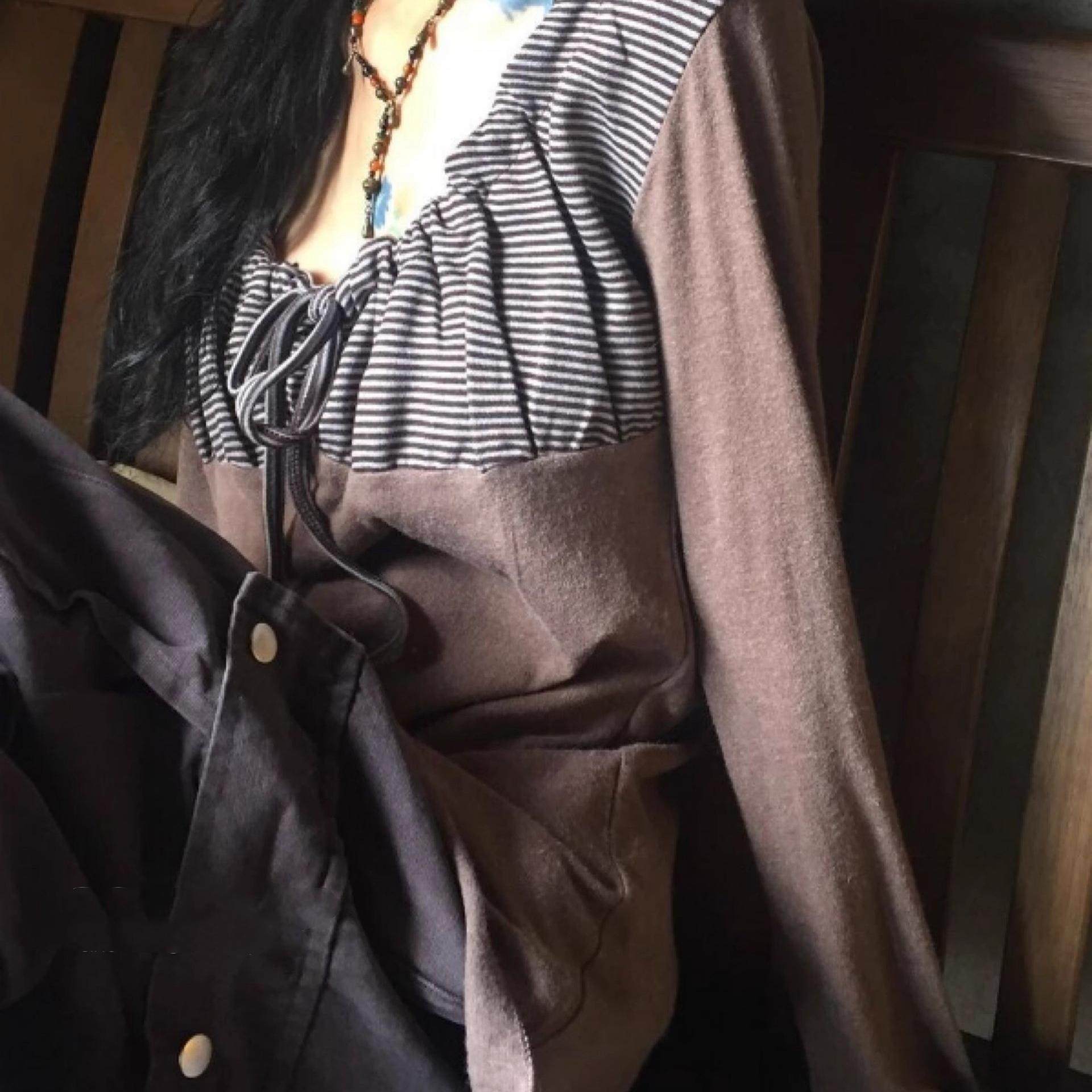 Exclusive type 日系街头复古条纹拼接慵懒系带百搭长袖T恤上衣女