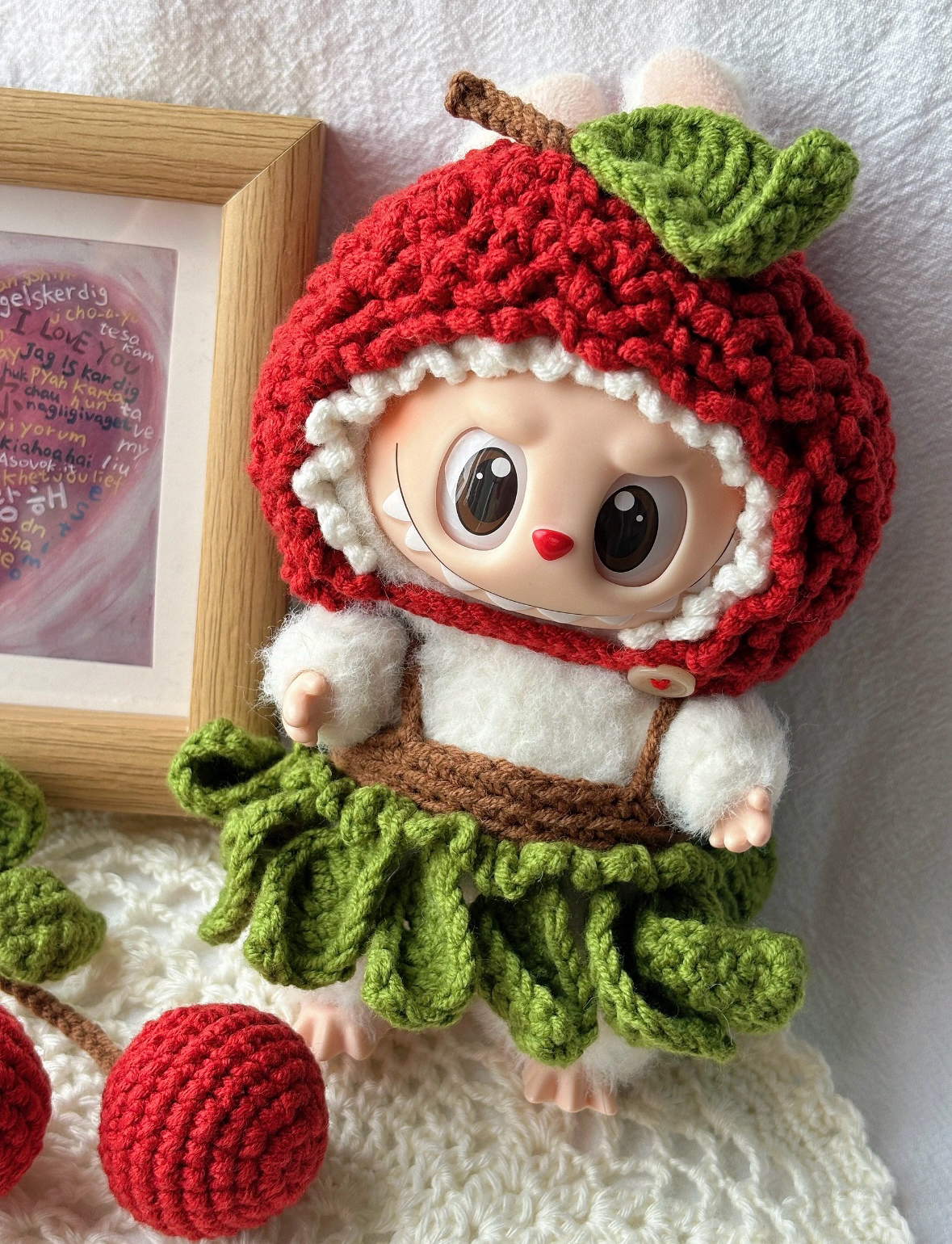 拉布布labubu荔枝水果娃衣毛线手工编织钩针diy材料包玩偶衣服