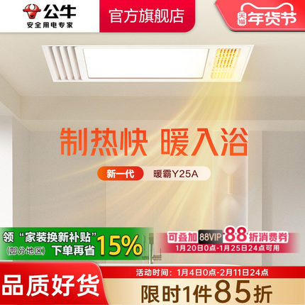 公牛Y25A多功能风暖浴霸照明排气扇一体浴室卫生间集成吊顶取暖器