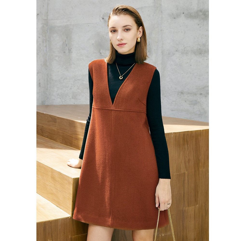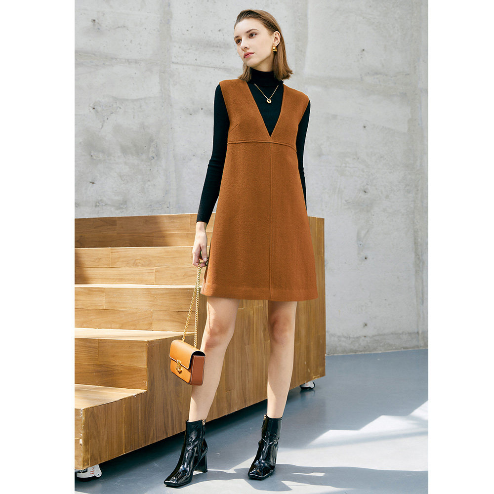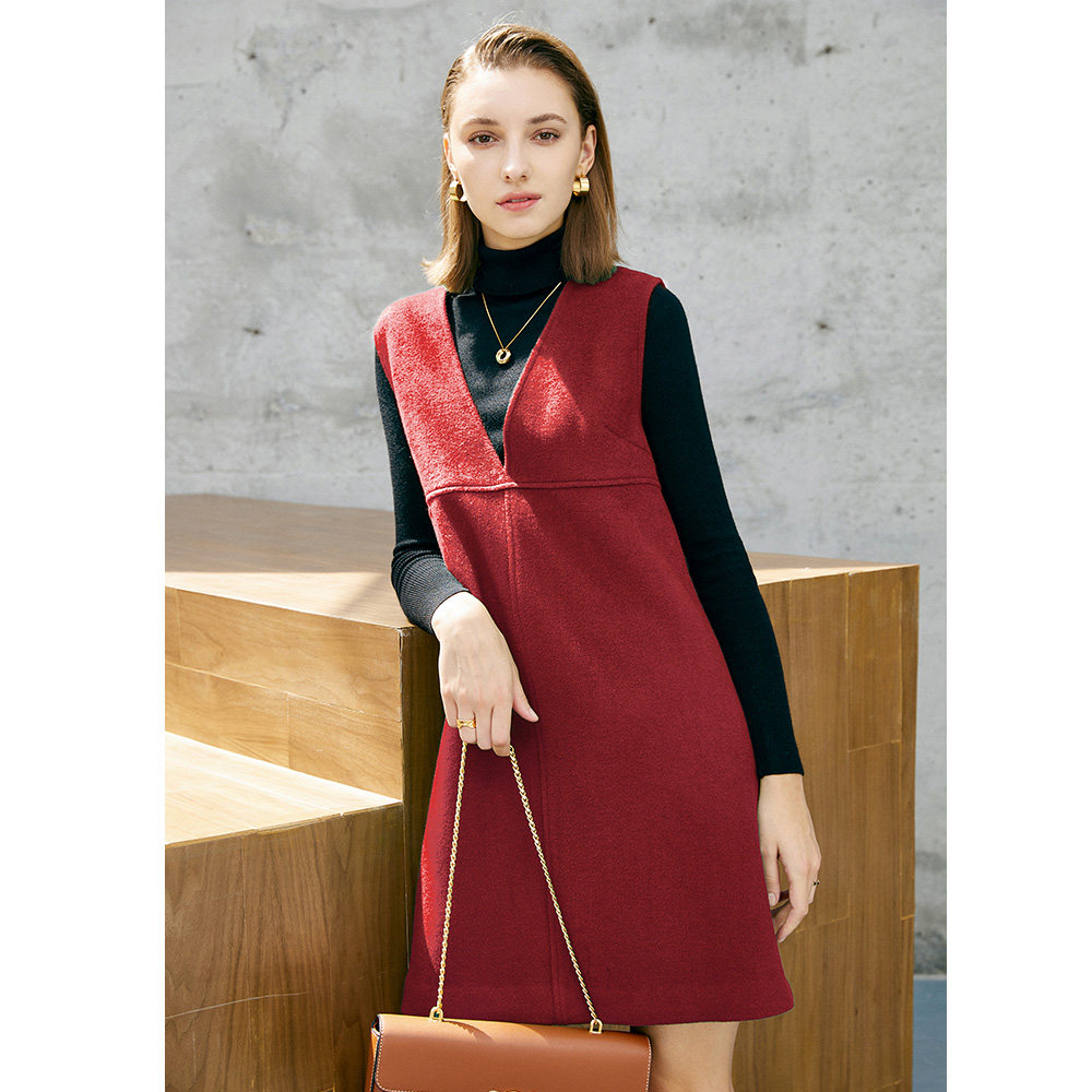 颜域无袖v领连衣裙2024冬季新款女装气质减龄时尚百搭羊毛背心裙
