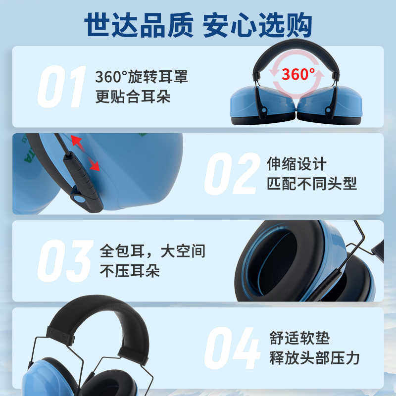 世达降噪耳罩儿童青少年隔音学习睡觉防噪降噪头戴式耳机05033