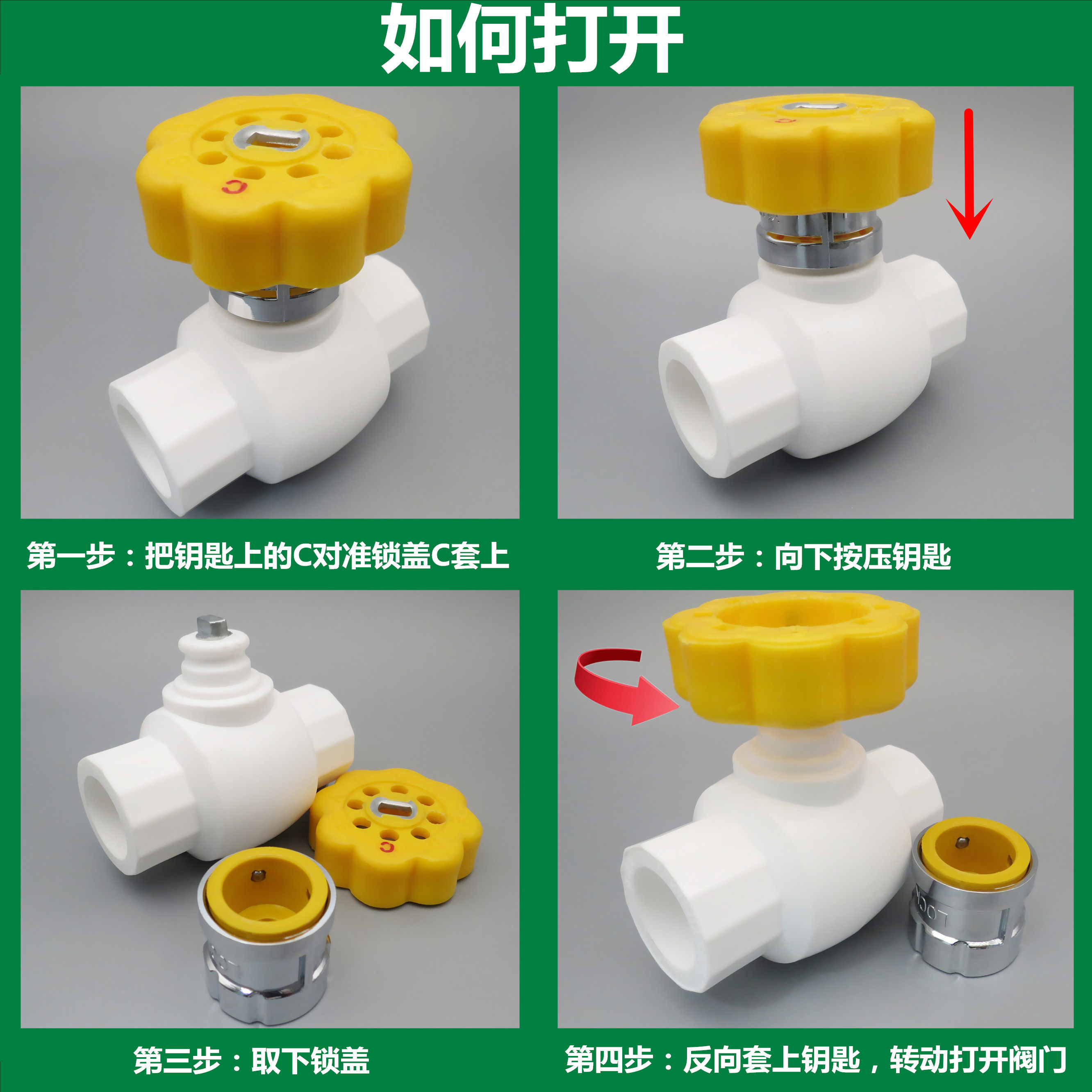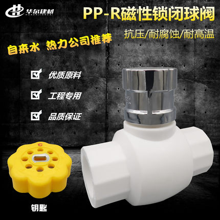 PPR磁性锁闭阀门4分20暖气1寸32带锁球阀6分25热熔自来水管总开关