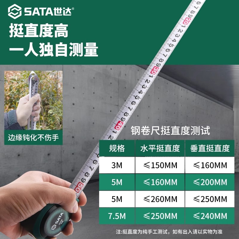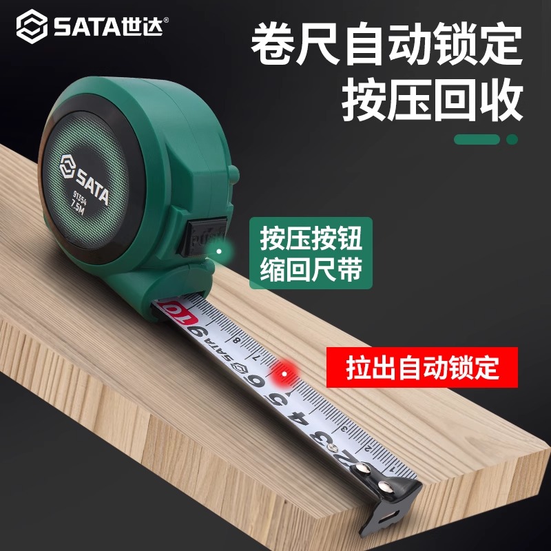 世达自锁卷尺5米加厚加硬钢卷尺3米家用小尺子圈尺7.5m工地测量尺