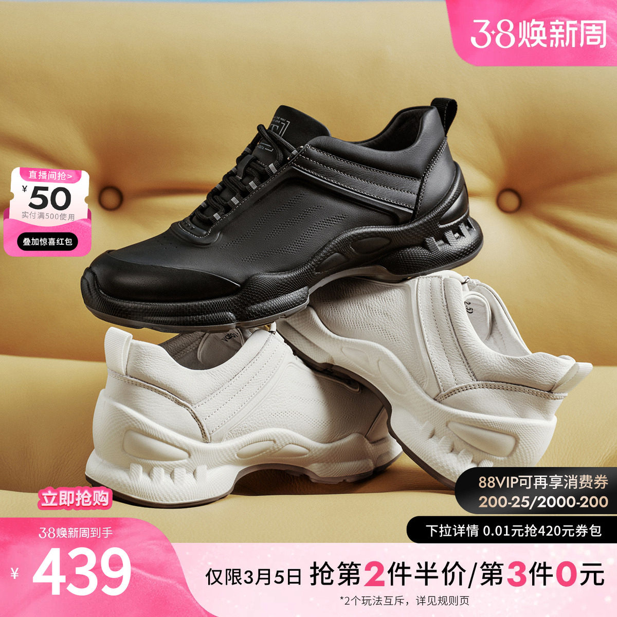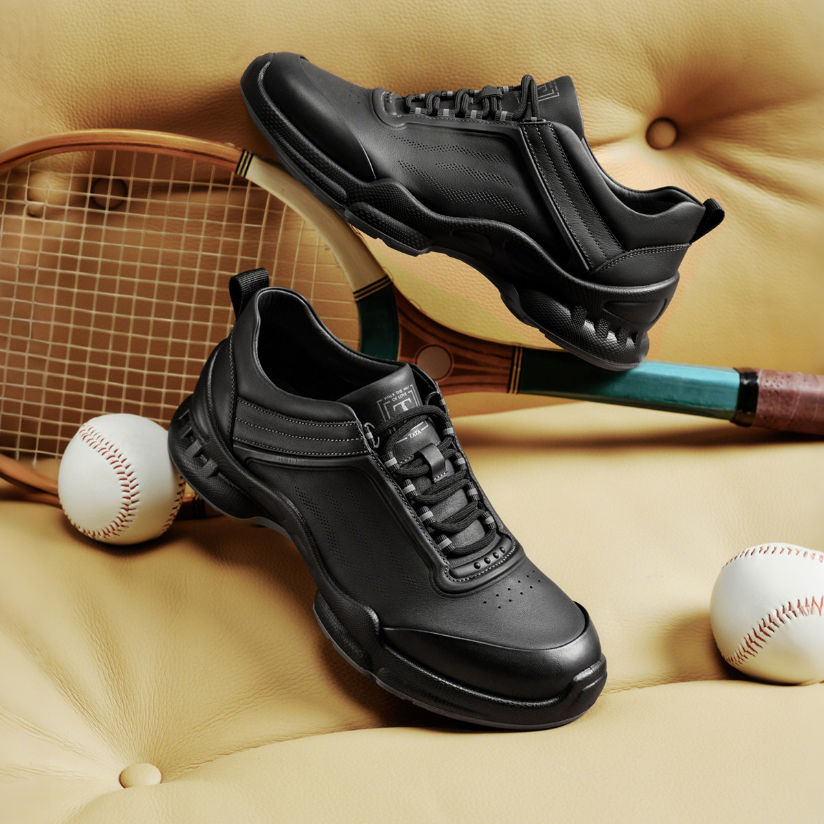 TATA他她男鞋2026春季商场同款舒适百搭休闲鞋黑色运动鞋VQP01AM6