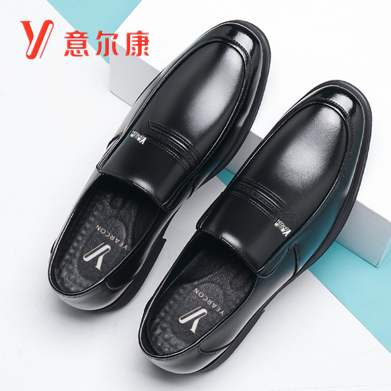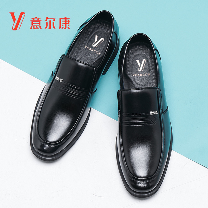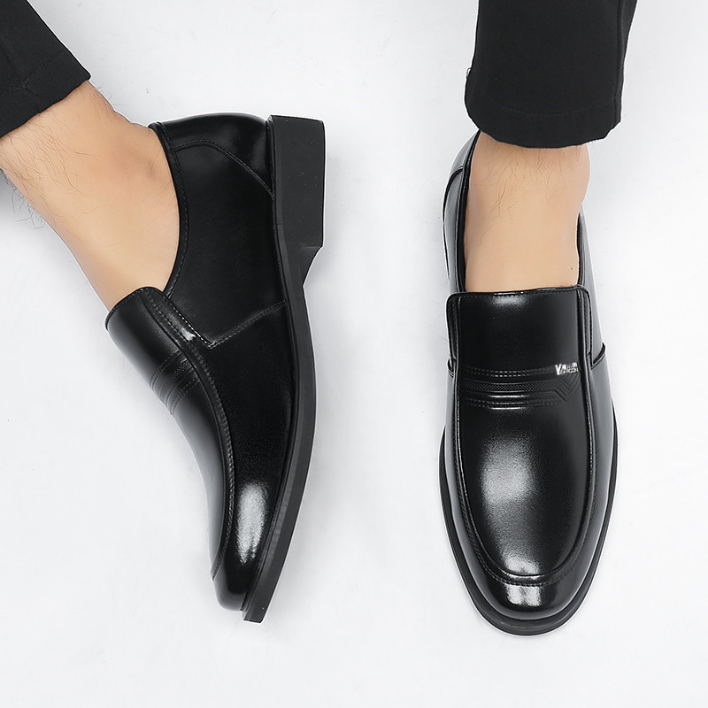 夏季透气凉皮鞋2023新款商务正装男鞋套脚真皮透气防滑休闲爸爸鞋