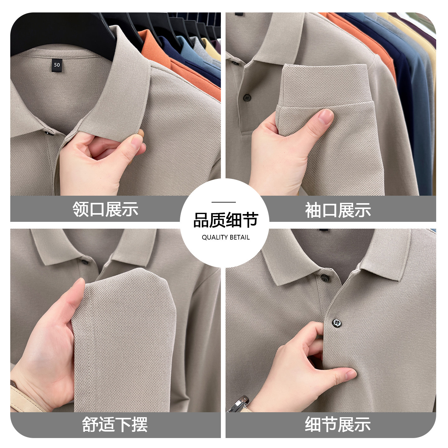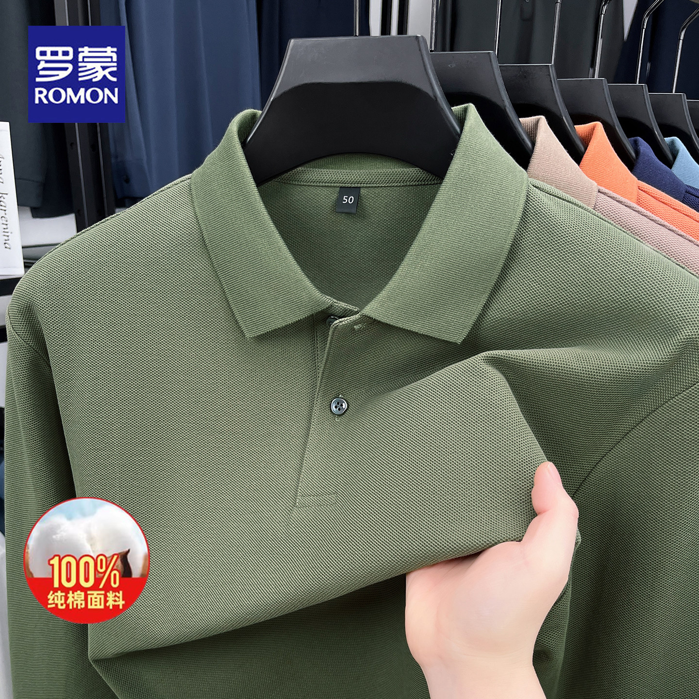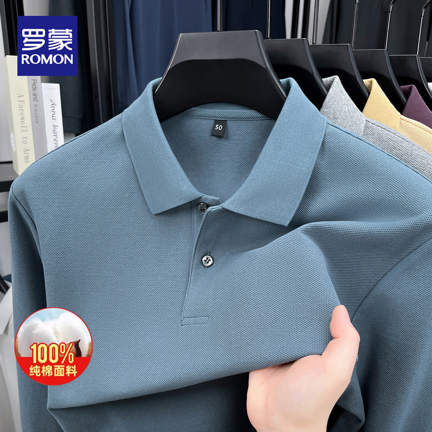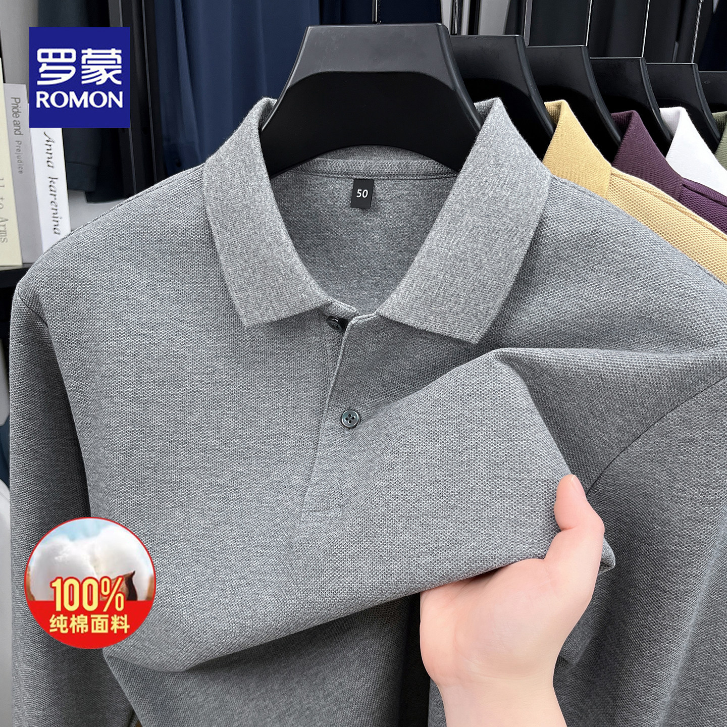 罗蒙春秋纯棉长袖polo衫亲肤舒适