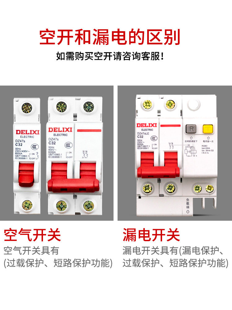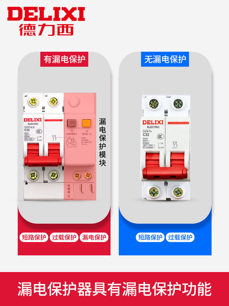德力西空气开关带漏电保护器DZ47SLE家用断路器220v漏保短路