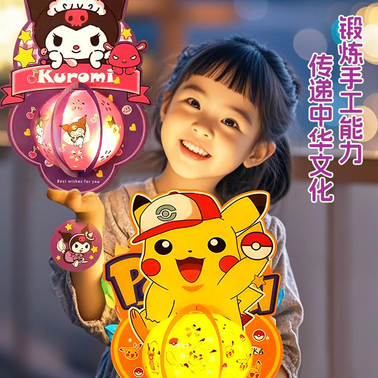 中秋节手提花灯手工diy材料包新款男女孩子发光灯笼制作儿童玩具6