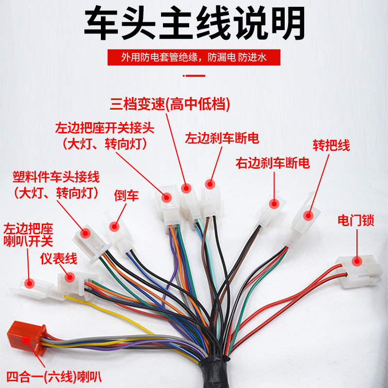 电动三轮车简易款线路牛头整车大线国标线束车头电器配件全套