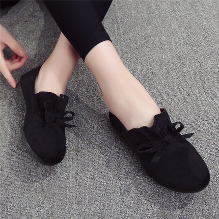 春秋新款时尚豆豆鞋女平底圆头单鞋老北京布鞋韩版百搭懒人鞋女鞋