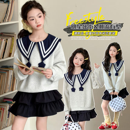 女童套装春装2026新款儿童洋气卫衣女孩大童时髦春秋款两件套裙子