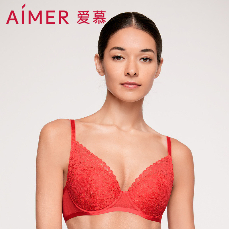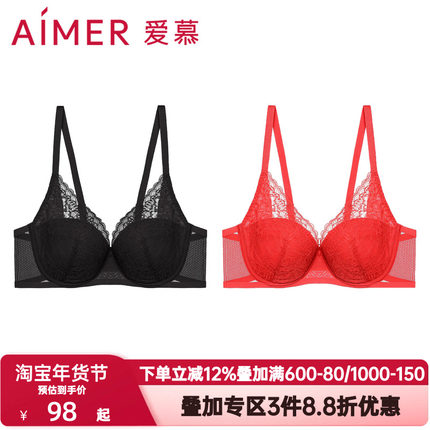 爱慕舒颜内衣女大罩杯红色本命年无纺布侧收副乳聚拢文胸AM126311