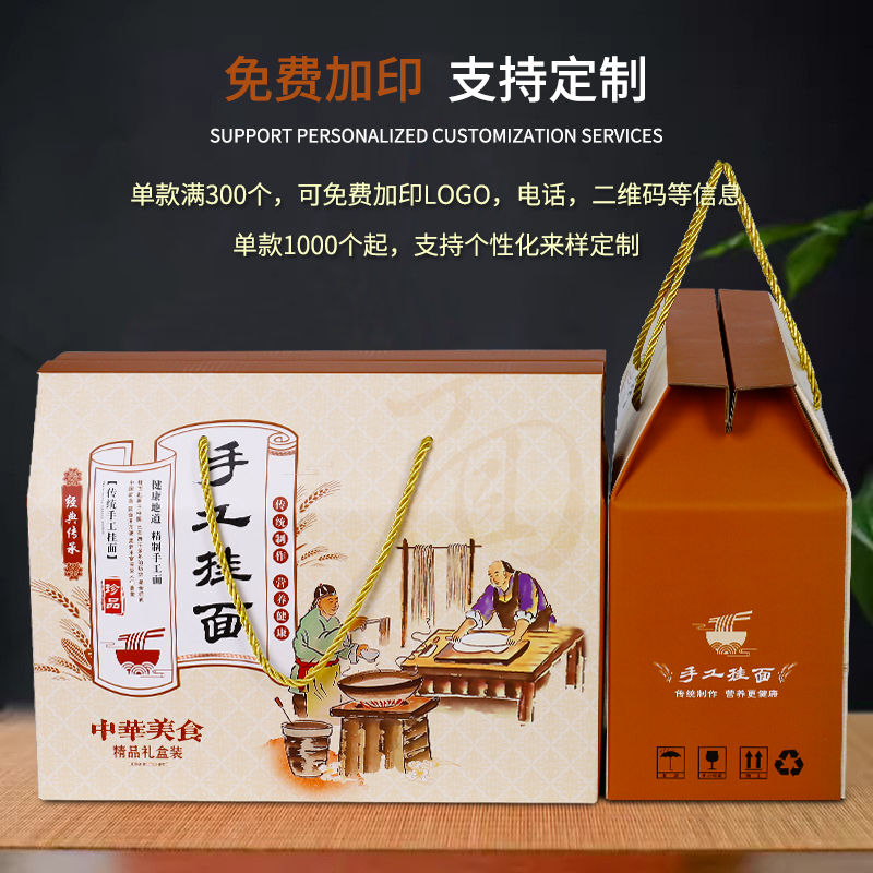 手工挂面包装盒10斤面条礼品箱荞麦果蔬面粉特产杂粮彩箱定制批发