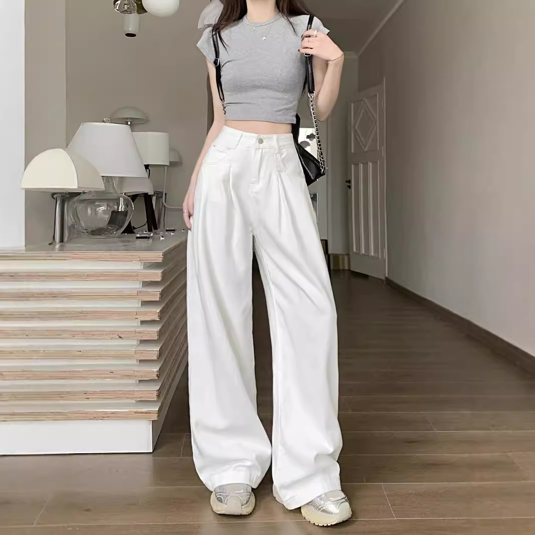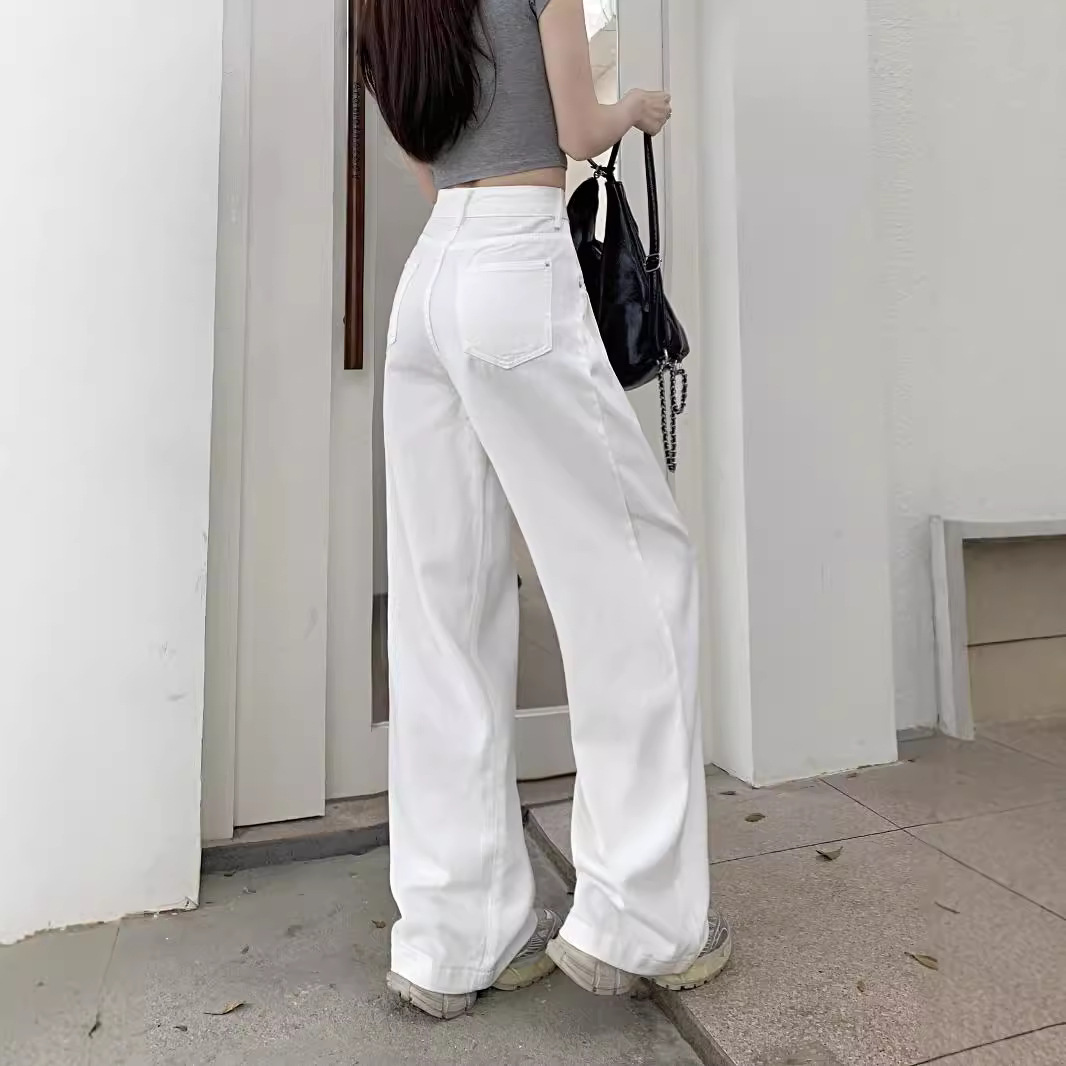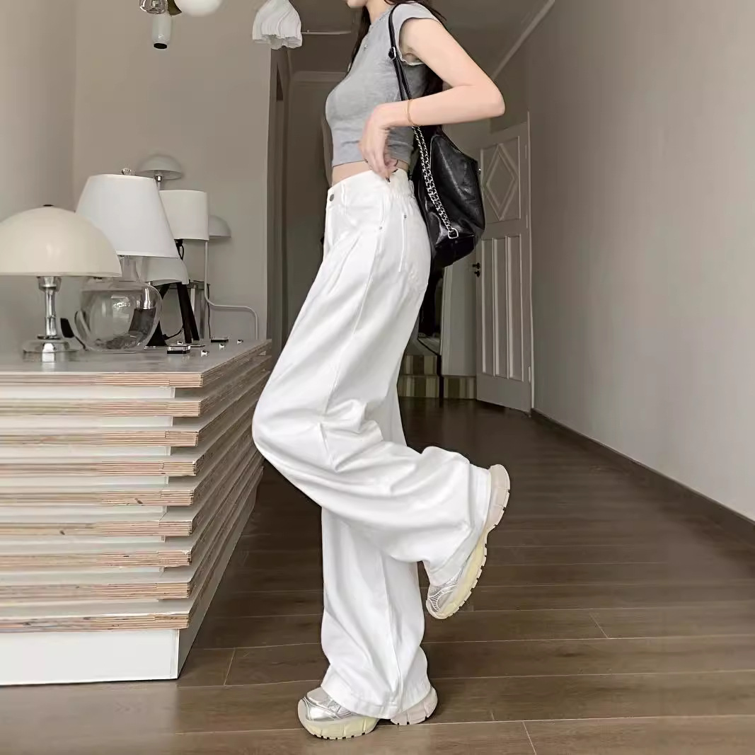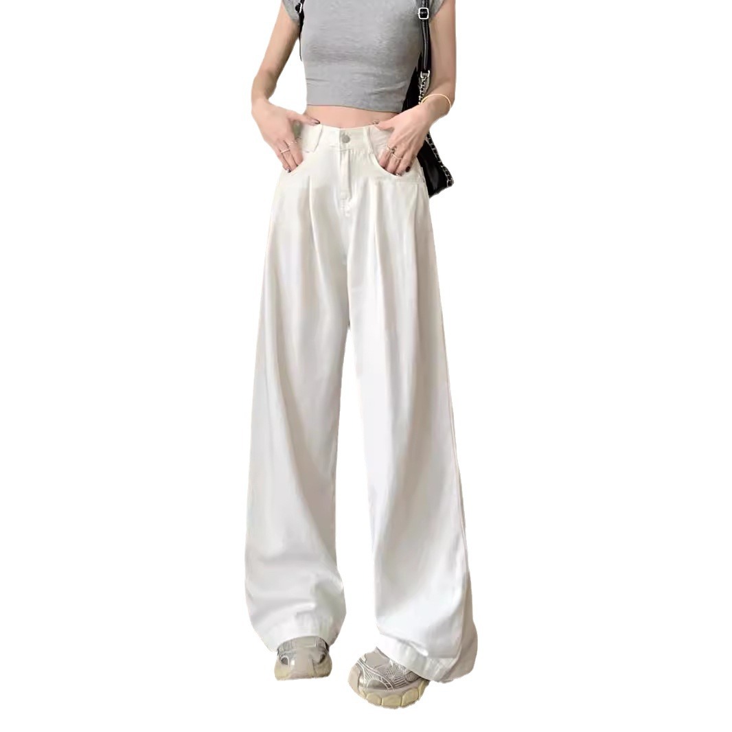 夏季新款女装白色宽松阔腿裤潮高腰显瘦垂感直筒裤拖地牛仔长