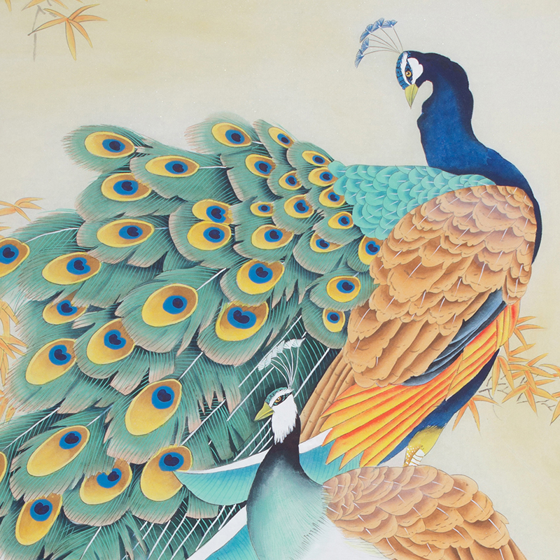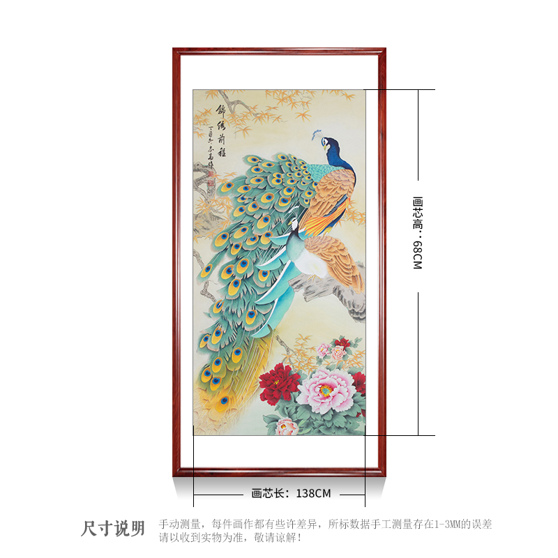 精品国画手绘孔雀工笔花鸟画办公室客厅装饰画玄关挂画花开富贵图
