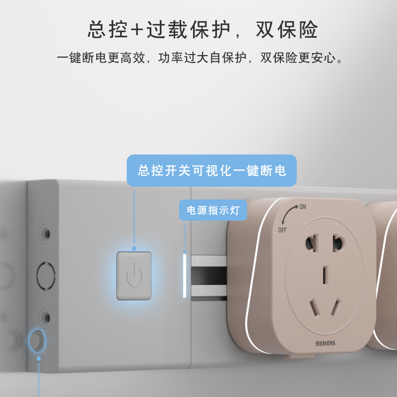 西门子轨道插座嵌入壁挂式电力接线板家用明装厨房可移动无线插排