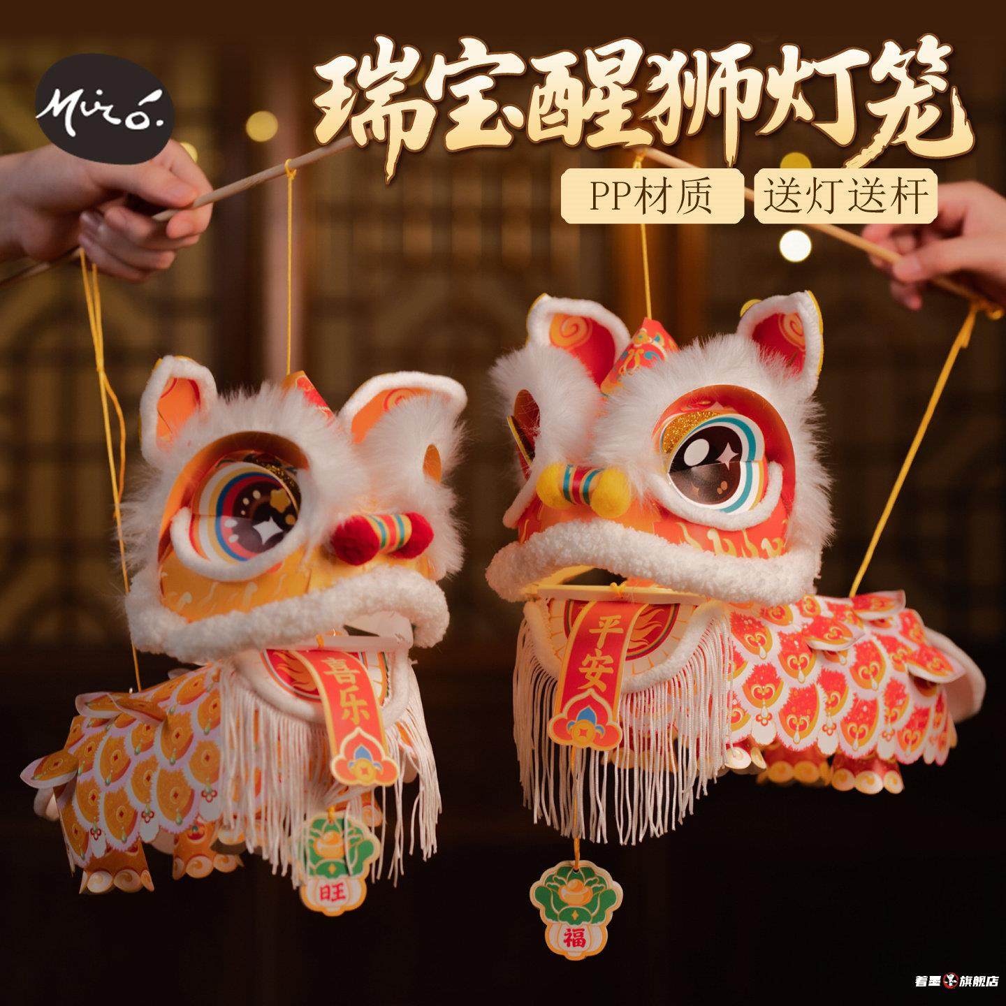 马年醒狮灯笼手工diy材料新年春节元旦儿童制作瑞宝狮子手提花灯