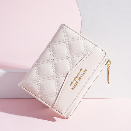 新款短款折叠小钱包女式小众设计韩版时尚ins菱格子车缝线钱夹包