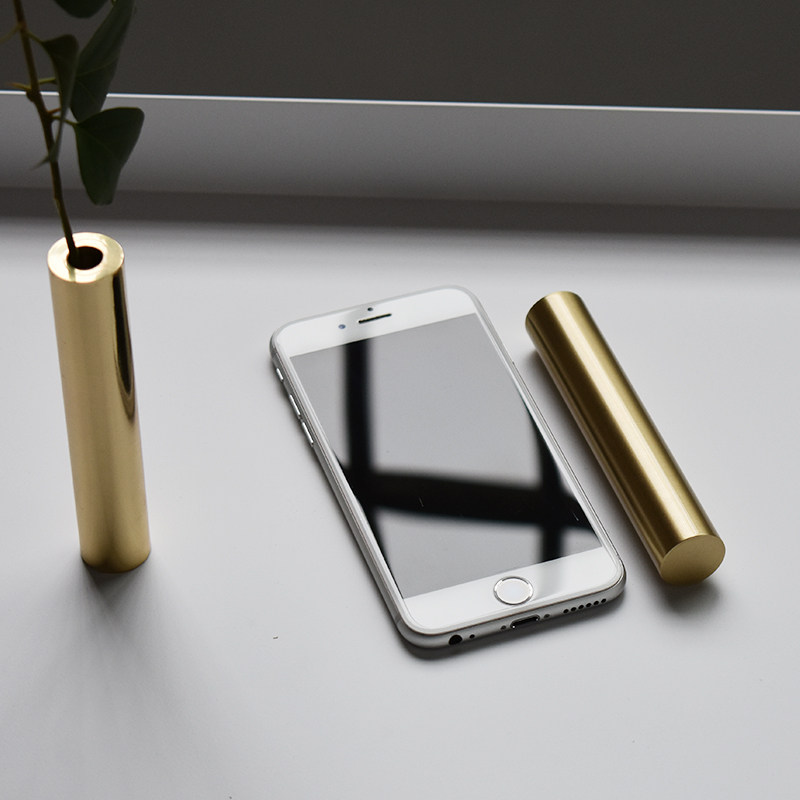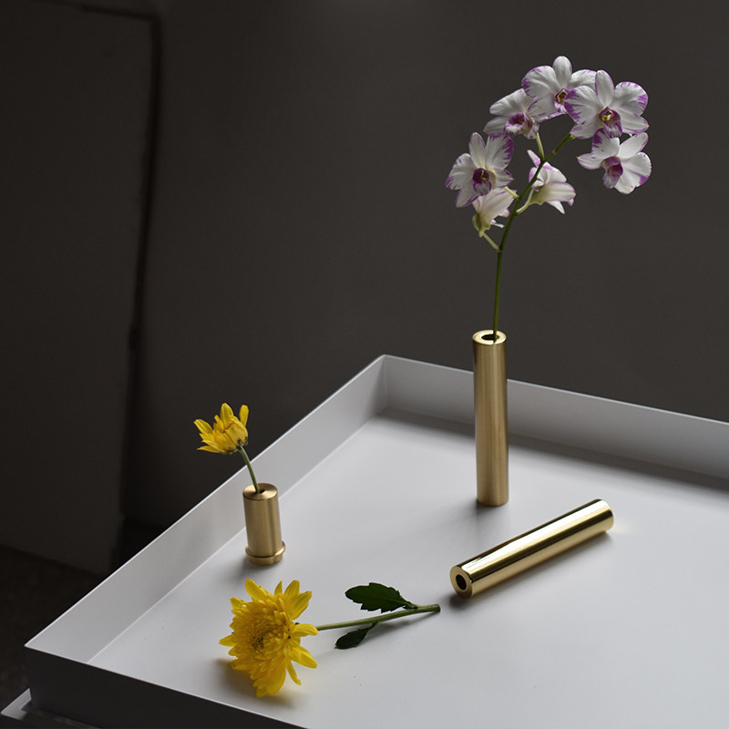 北欧工业风易倒小花瓶 黄铜简约现代插花器干花鲜花软装摆件