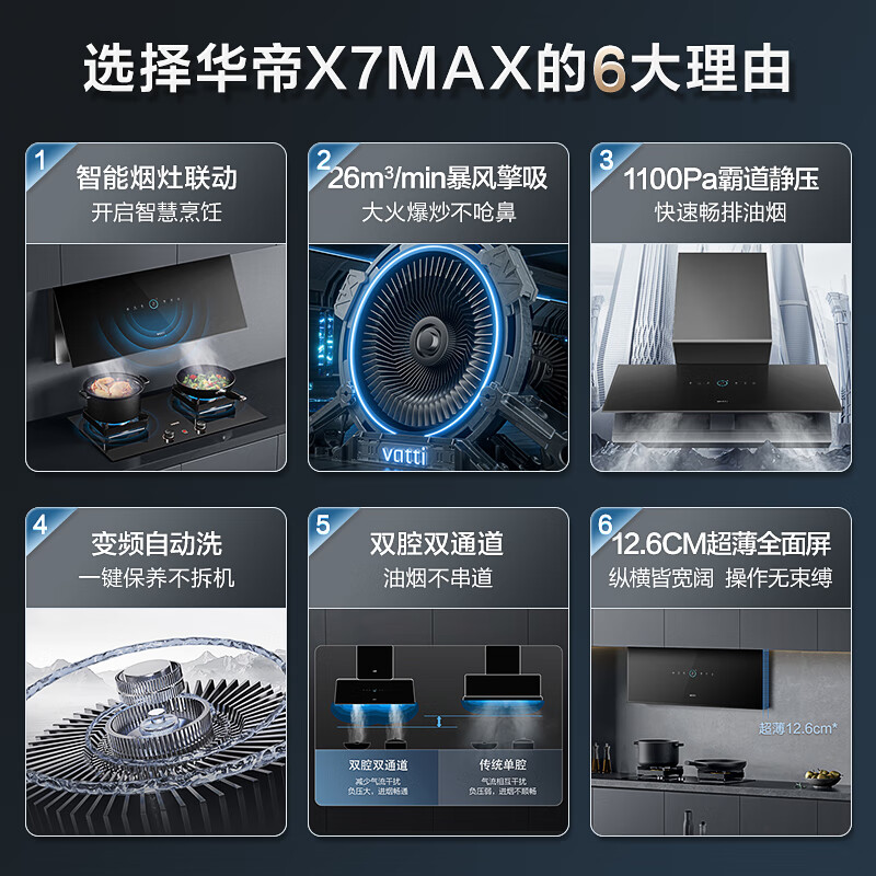 华帝X7Max超薄全面屏变频排抽油烟机家用大吸力厨房吸油机X10B
