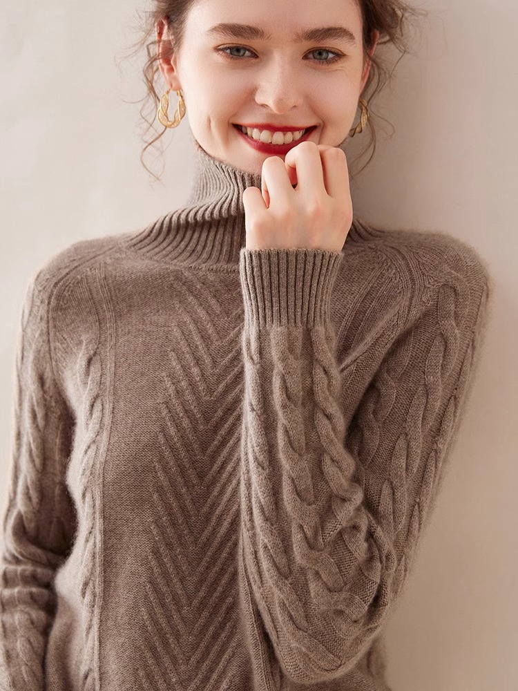 2024冬季新款高领100%纯山羊绒衫女麻花加厚保暖针织打底套头毛衣